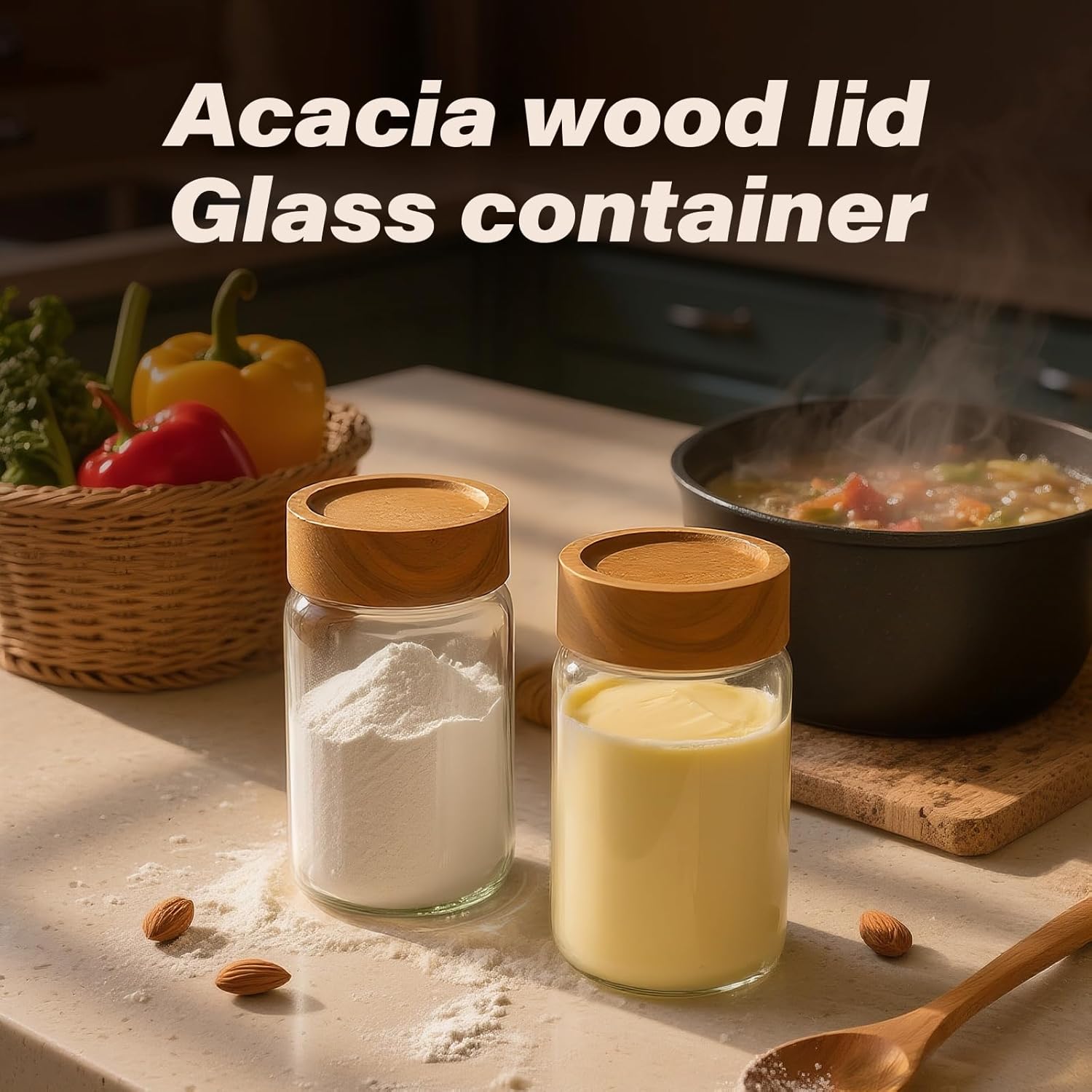 - 【Airtight & Freshness Lock】 – The acacia wood lids create a secure seal, preventing moisture and air exposure to keep contents dry and fresh longer than plastic containers.