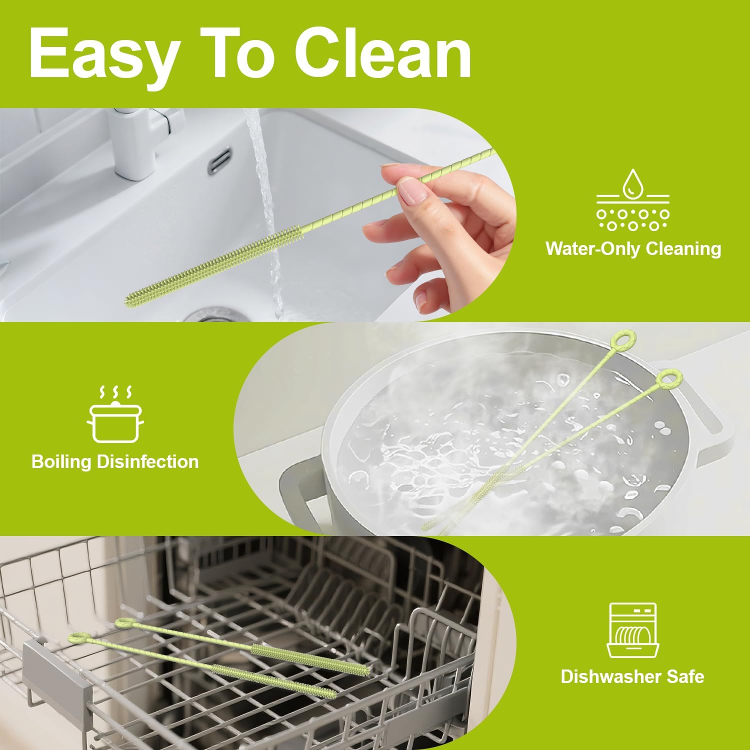 - Safe & Durable Silicone Bristles: Made from high-quality, food-grade silicone, BPA Free, our straw brush are gentle on straws (won't scratch) yet tough on buildup. The flexible Handle bend to scour every curve and corner for a thorough clean, and won't shed or break like bristle brushes.