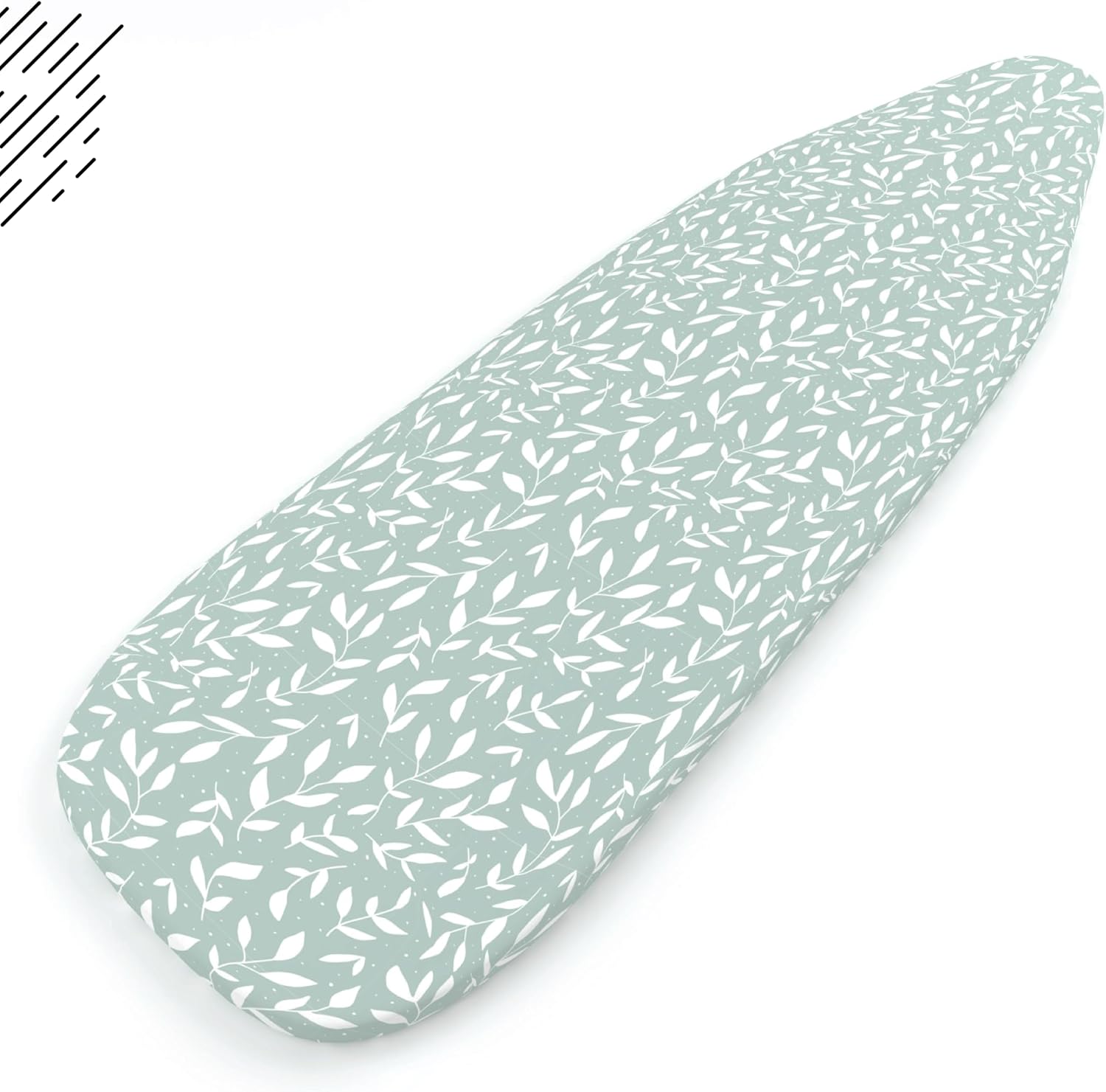 Encasa XO Ironing Board Cover and Pad 49"x18" - Thick 3mm Felt Padding, Drawstring Tightening & Lock, Easy Fit, Scorch & Stain Resistant, Fits Wide Ironing Board - Green Leaflet