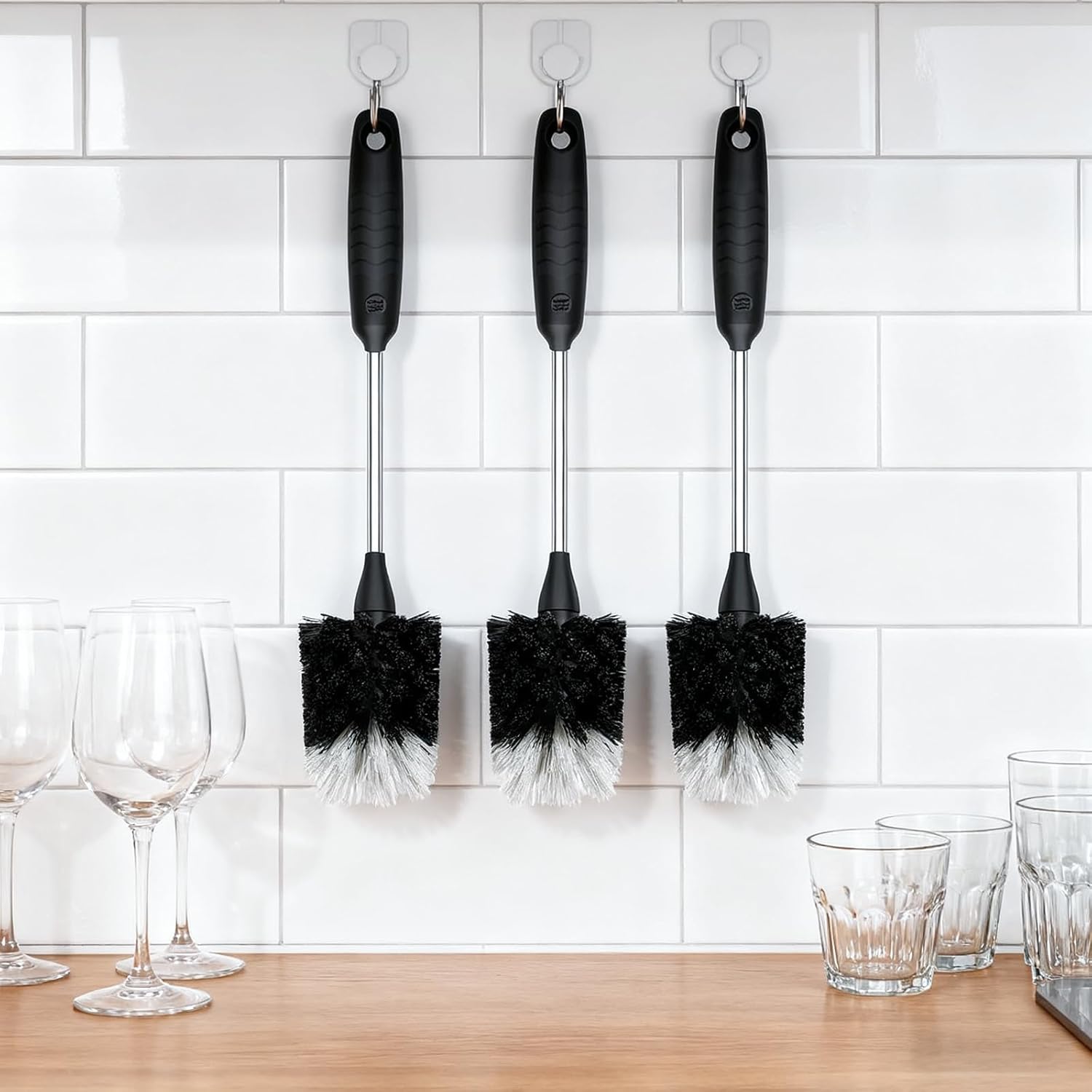 SetSail Bottle Brush of 3 Pack, 13-in Long Stainless Steel Handle Water Bottle Cleaner Brush Non-Slip Grip Bottle Brushes for Cleaning Water Bottles Sport Bottles Coffee Mugs Glasswares Cups, Black