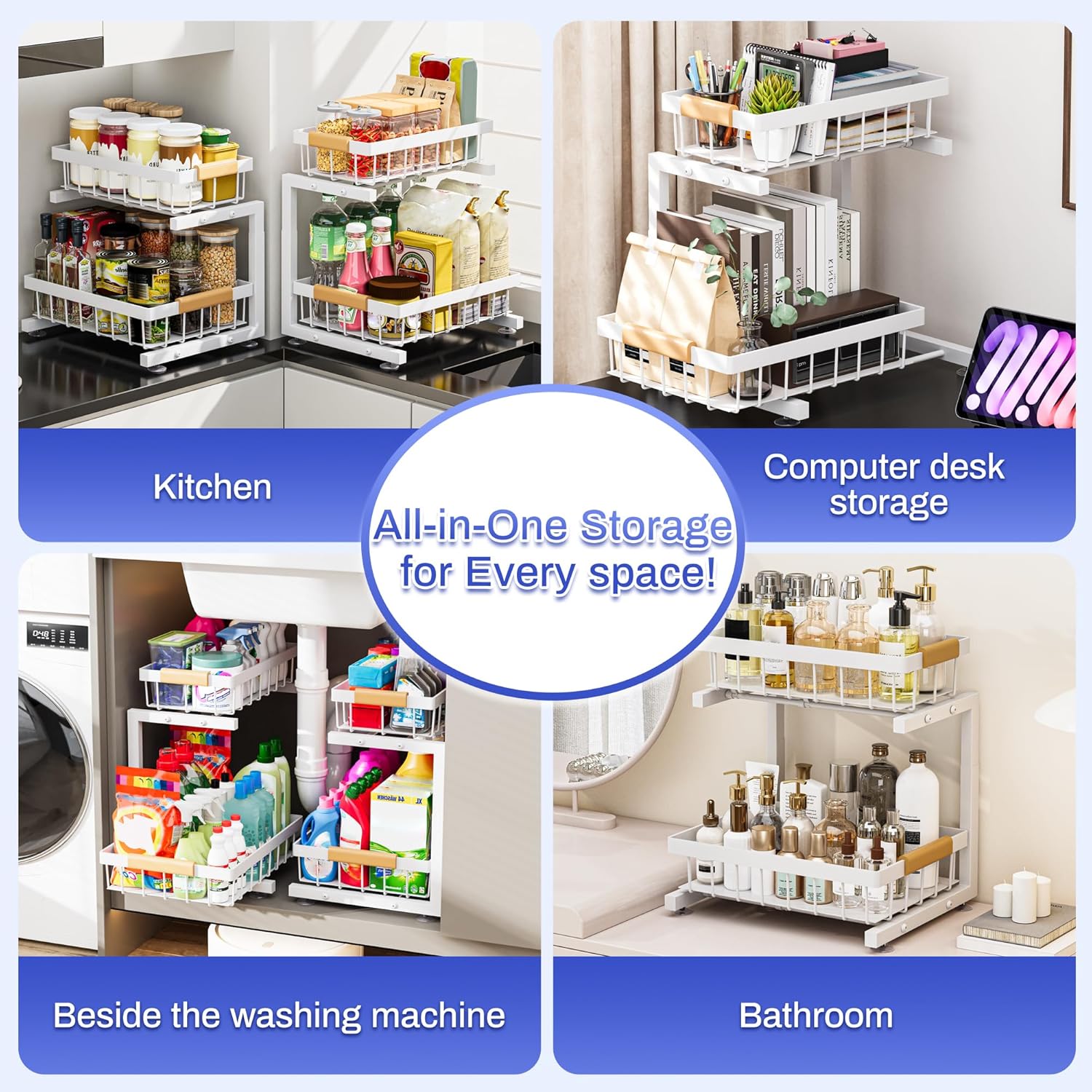ADBIU Under Sink Organizer, 2 Pack 2 Tier Expandable Height (White, Large Size)
