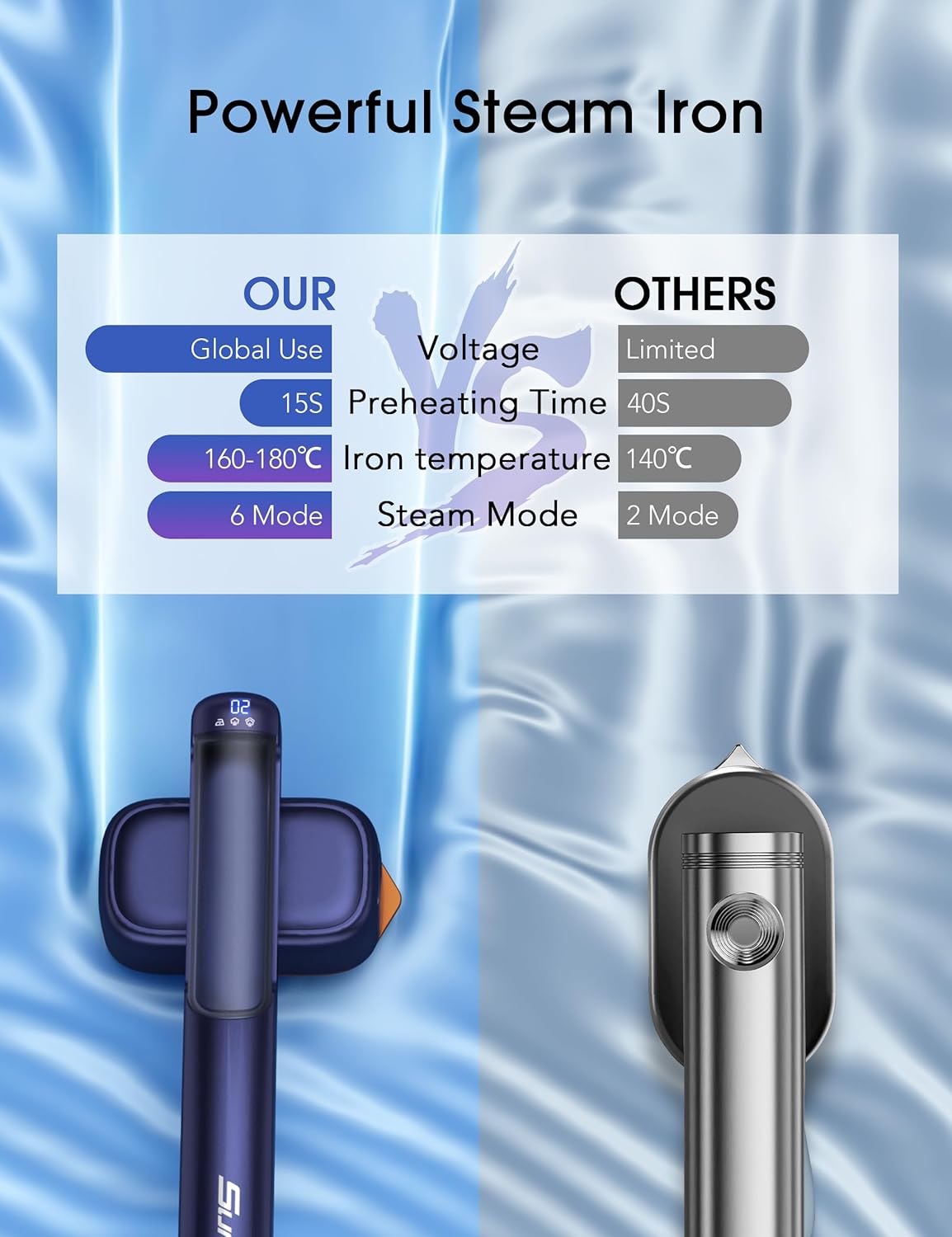 - 15-Second Instant Steam & 8-Min Continuous Power: 1200W dual-heat technology generates ready steam in just 15 seconds, with powerful steam flow lasting 5-8 minutes - enough to refresh 3 full outfits or large drapes. Features a 6.8ft swivel cord for versatile use.