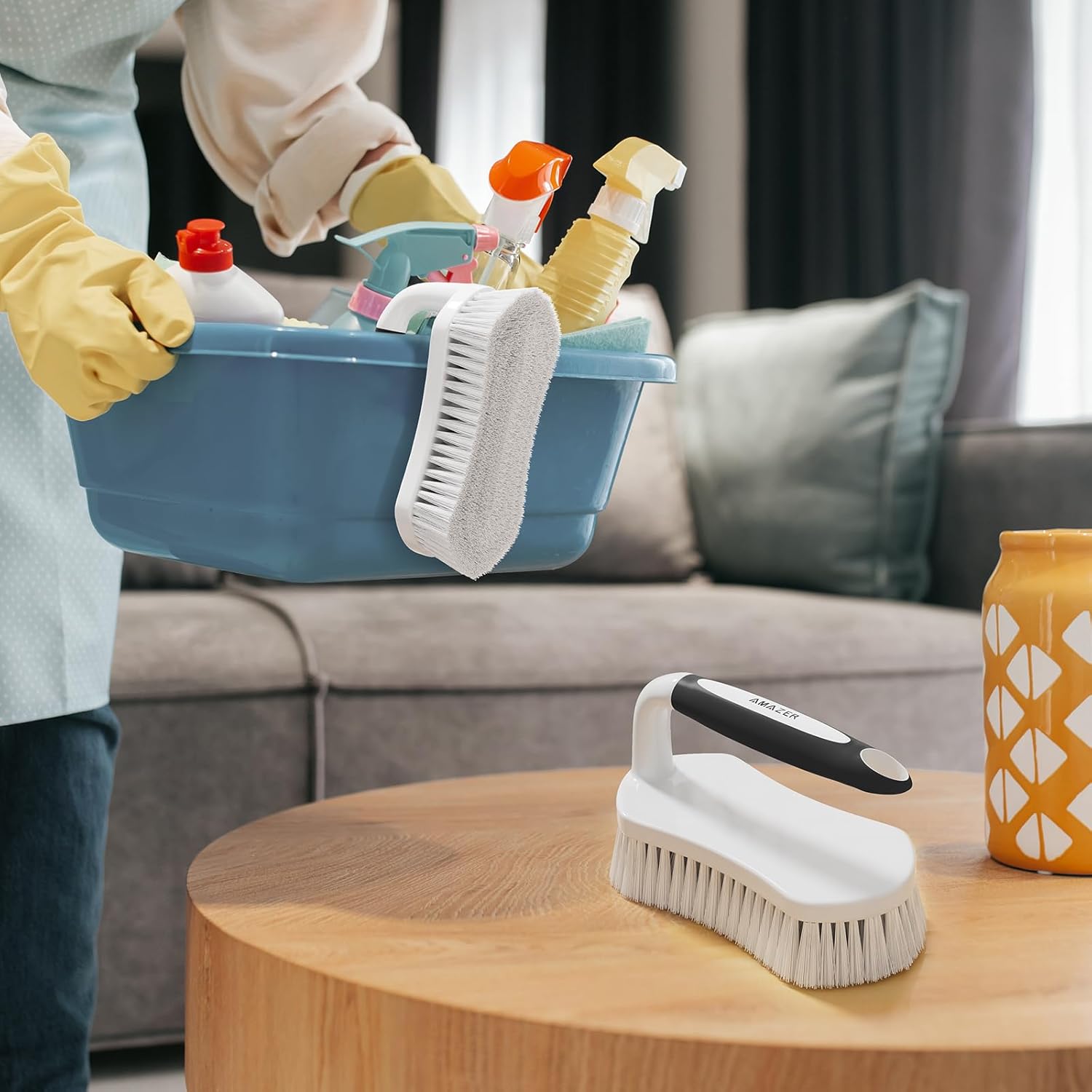 - Quality & sturdy bristles: Amazer Cleaning brush boasts extra-tough fibers for easy scrubbing of large areas. The bristles are denser and numerous, efficiently clean hard-to-clean dirt around your bathroom and kitchen or outdoor