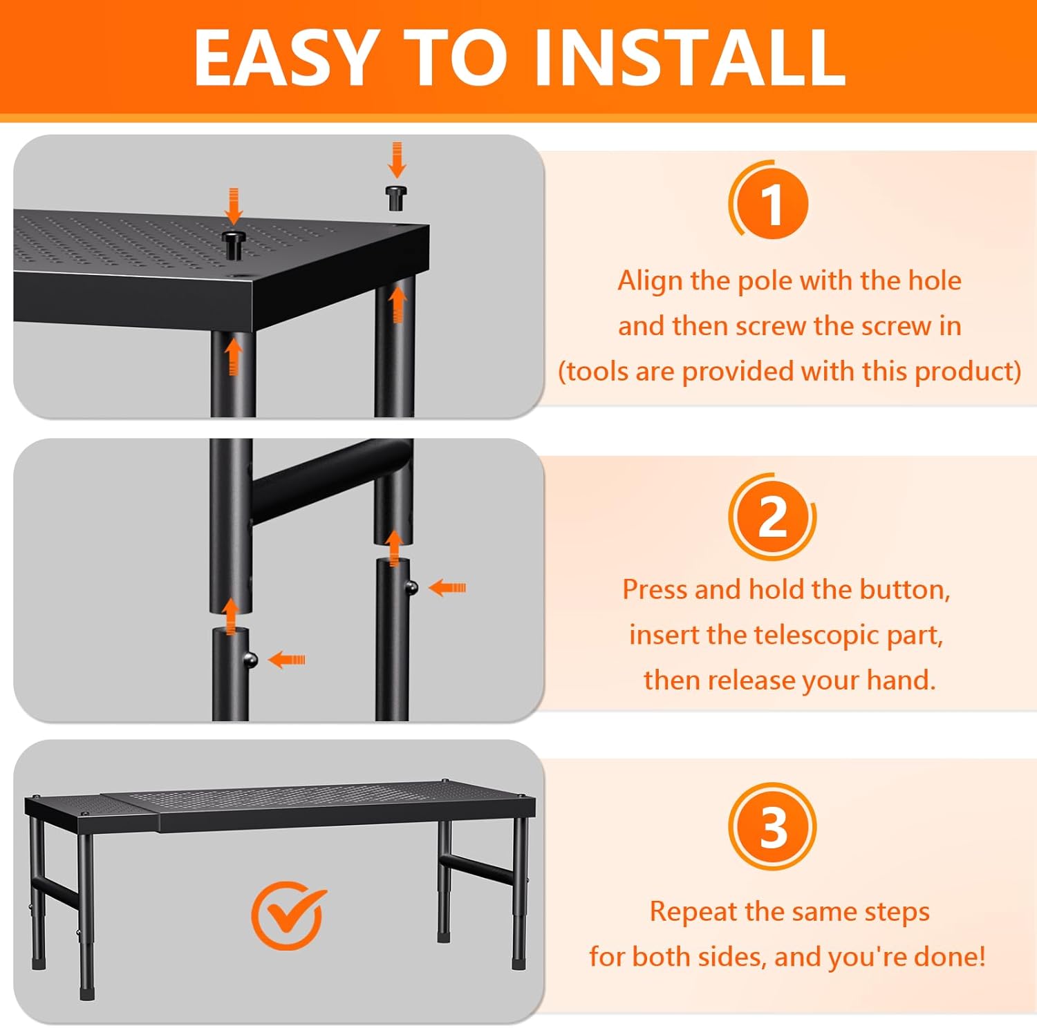 - Easy Installation:Comes with all needed accessories and step-by-step instruction. You only need to screw in a few nuts to assemble the countertop organizer.Its adjustable design ensures it is easy to use and fits perfectly in your kitchen space