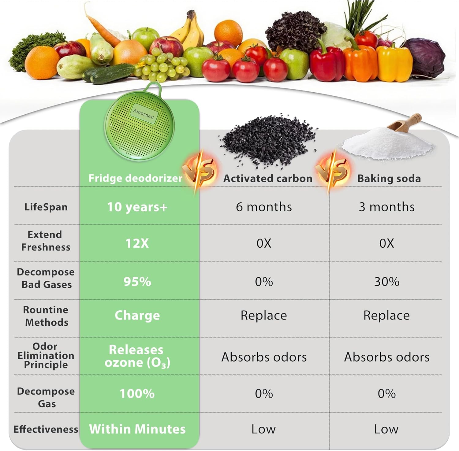 - ⚡【Durable and Strong Effect】Its non-absorbent catalytic design ensures zero performance decay, making this fridge smell eliminator a cost-effective, eco-friendly solution that reduces waste and hassle. Unlike traditional solutions (baking soda, charcoal), this fridge odor eliminator leaves no residue or harmful byproducts. Besides, There is no need to frequently to replace the adsorptive substances.