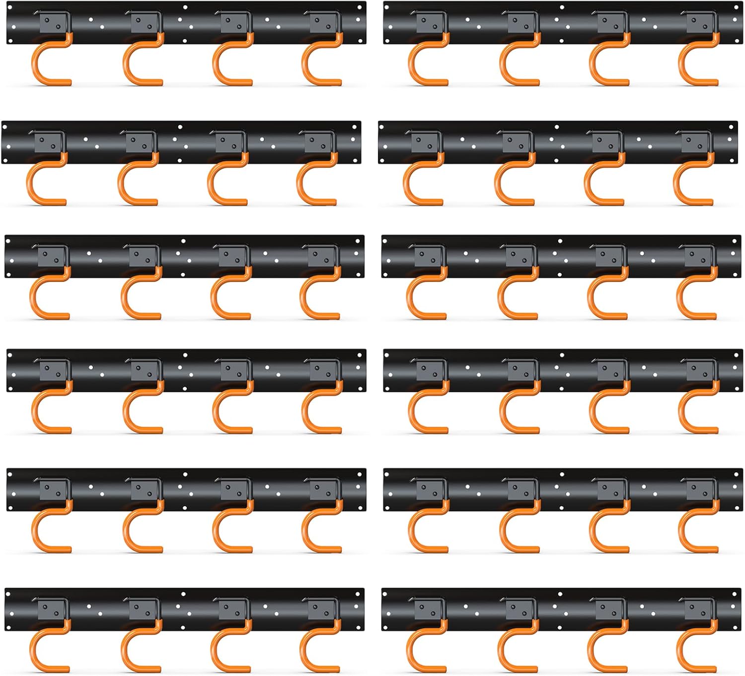 - Fully metal made: Our garage organizer wall mount back panel and hooks are all made of solid steel which makes the broom hanger wall mount is durable and sturdy. With more than 20 years' experience in mount, we have passed the professional load-bearing test, the maximum load of this broom organizer wall mount total is 120 lbs (each panel 60 lbs,each hook 15 lbs). The load-bearing capacity of the shed organizer far exceeds plastic made garage hooks and its service life is longer