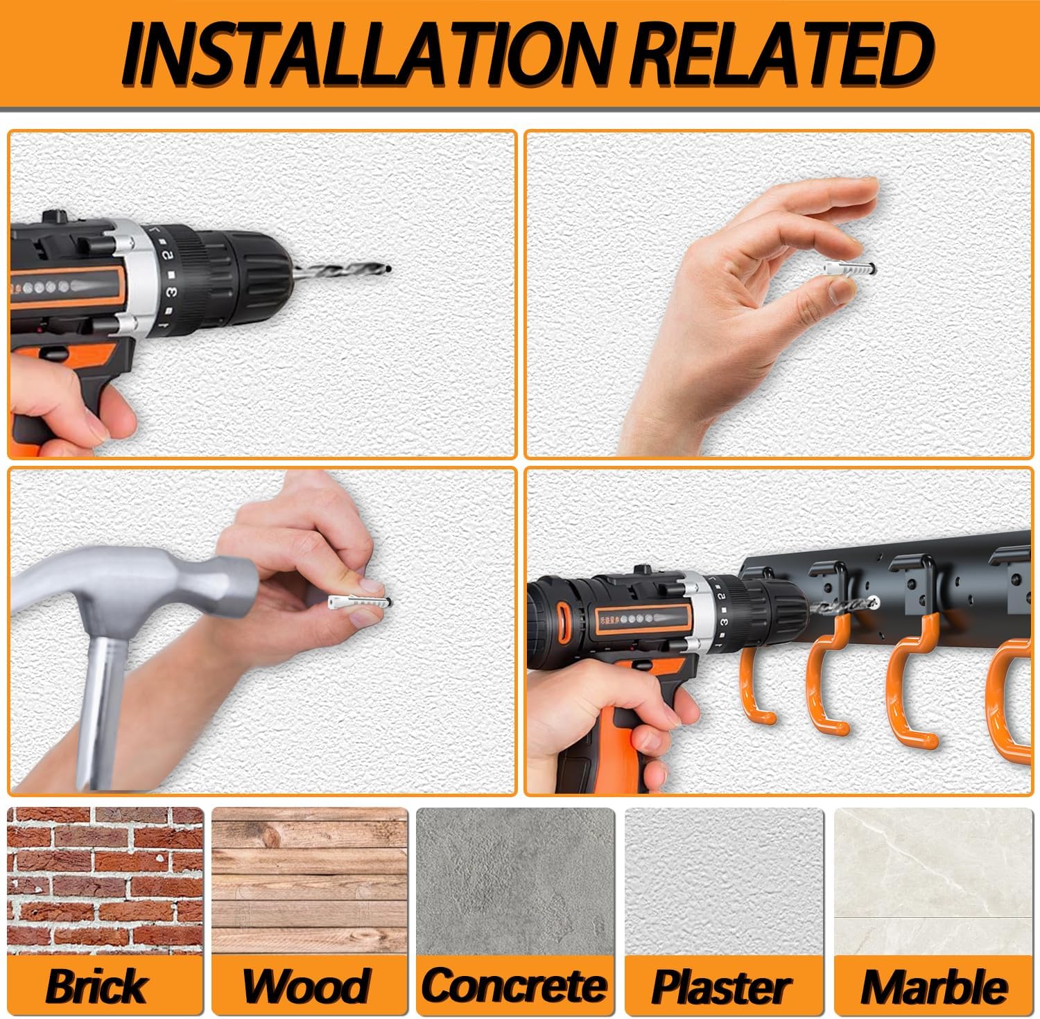 - Easy to Install: The garden tool organizer for garage comes with pre-drilled tracks and screws. Before mounting the garden tool rack, mark the position of the rail to ensure that it is parallel to the horizontal. Once marked, simply attach the garage rack to the wall studs using the included anchors and fasteners. The garage broom holder wall mount can be used for indoor and outdoor courtyards. Never worry about the 3-H garage hanging storage rack aging from sun-scorched and rain-drenched