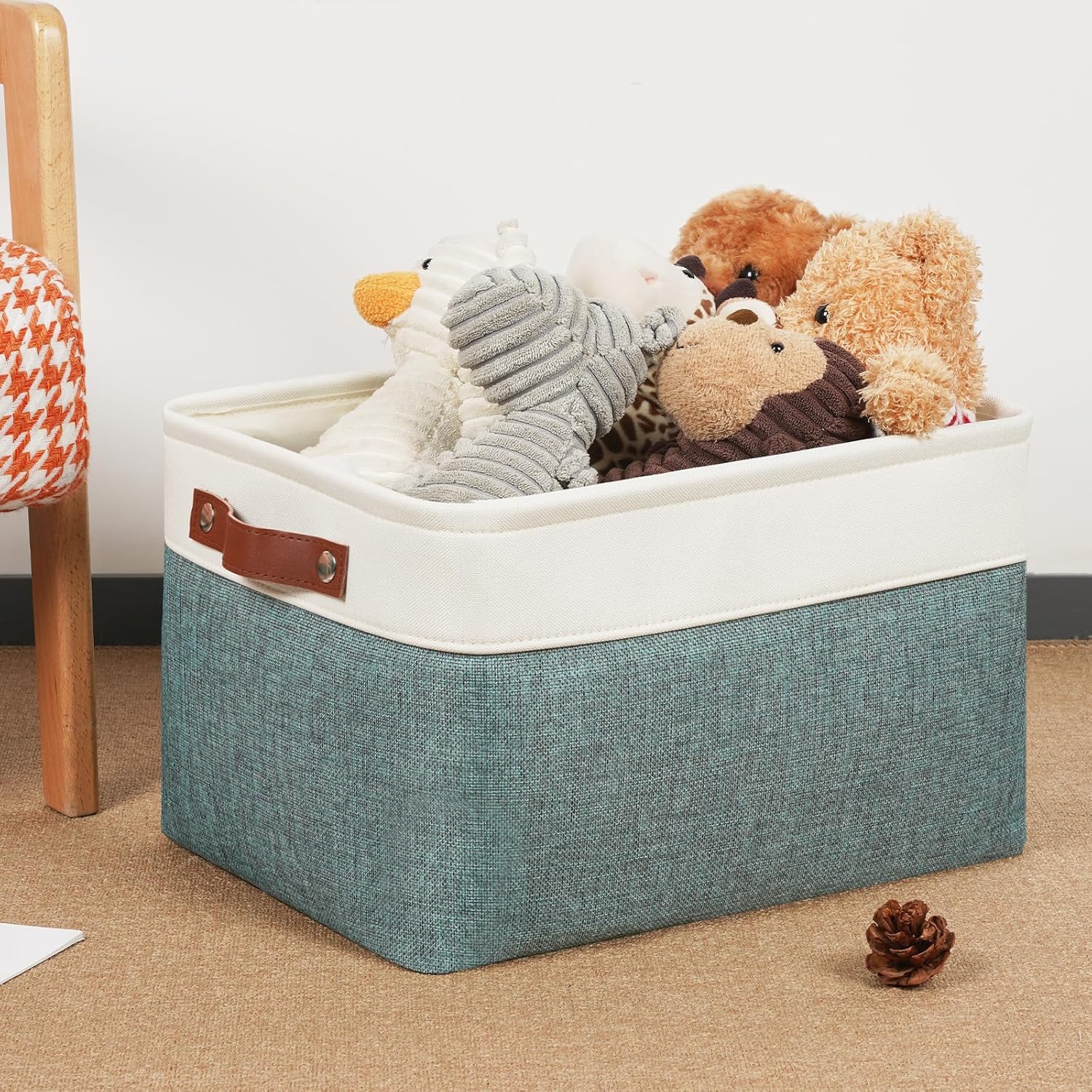 DULLEMELO Storage Baskets for Shelves, Fabric Collapsible Rectangular Storage Bins for Shelves, Closets, Nursery, Home, Office, Empty Gift Baskets (4-Pack-15"*11"*9.5", White&Deep Green)