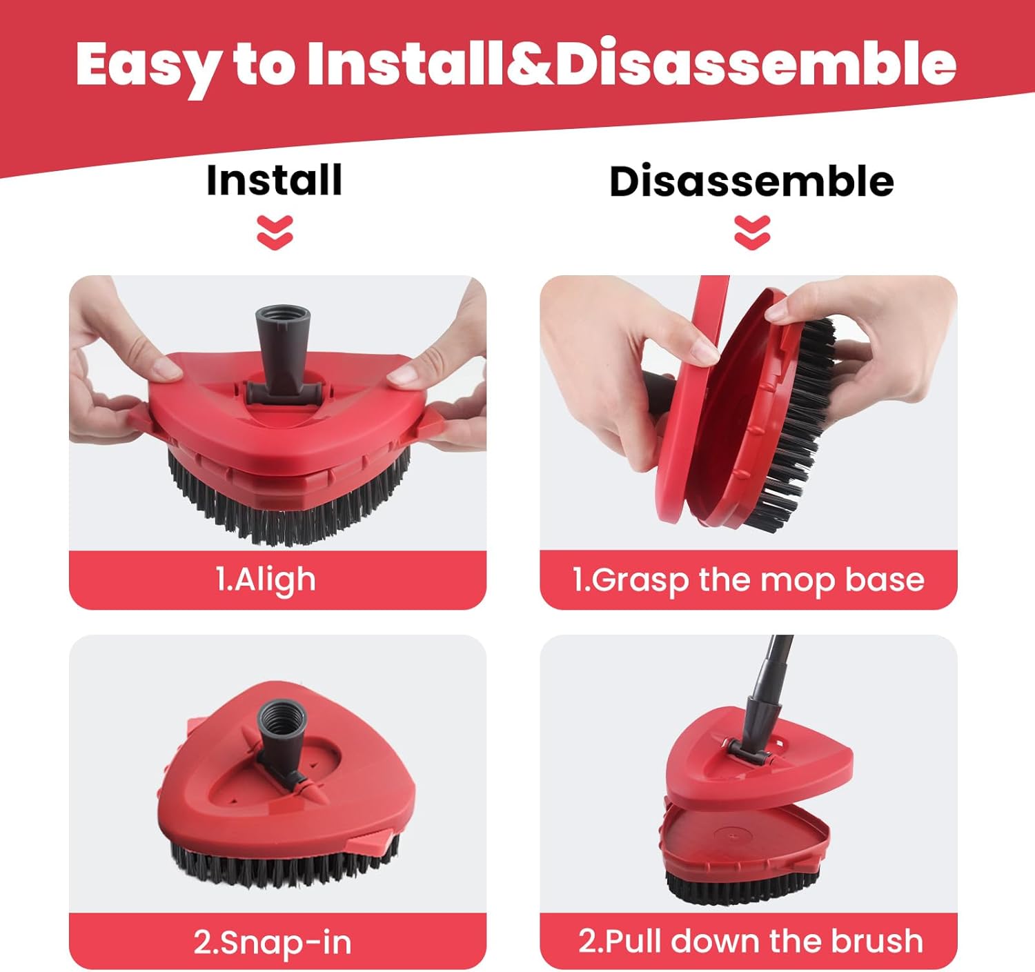 - [Multifunctional Scrub Brush Head]: The spin mop triangle scrubber brush head adopts a triangular design, making it easy to reach various corners. This brush head is very suitable for use in shower bathroom, home kitchen, wall, garage, deck, patio, yard and so on