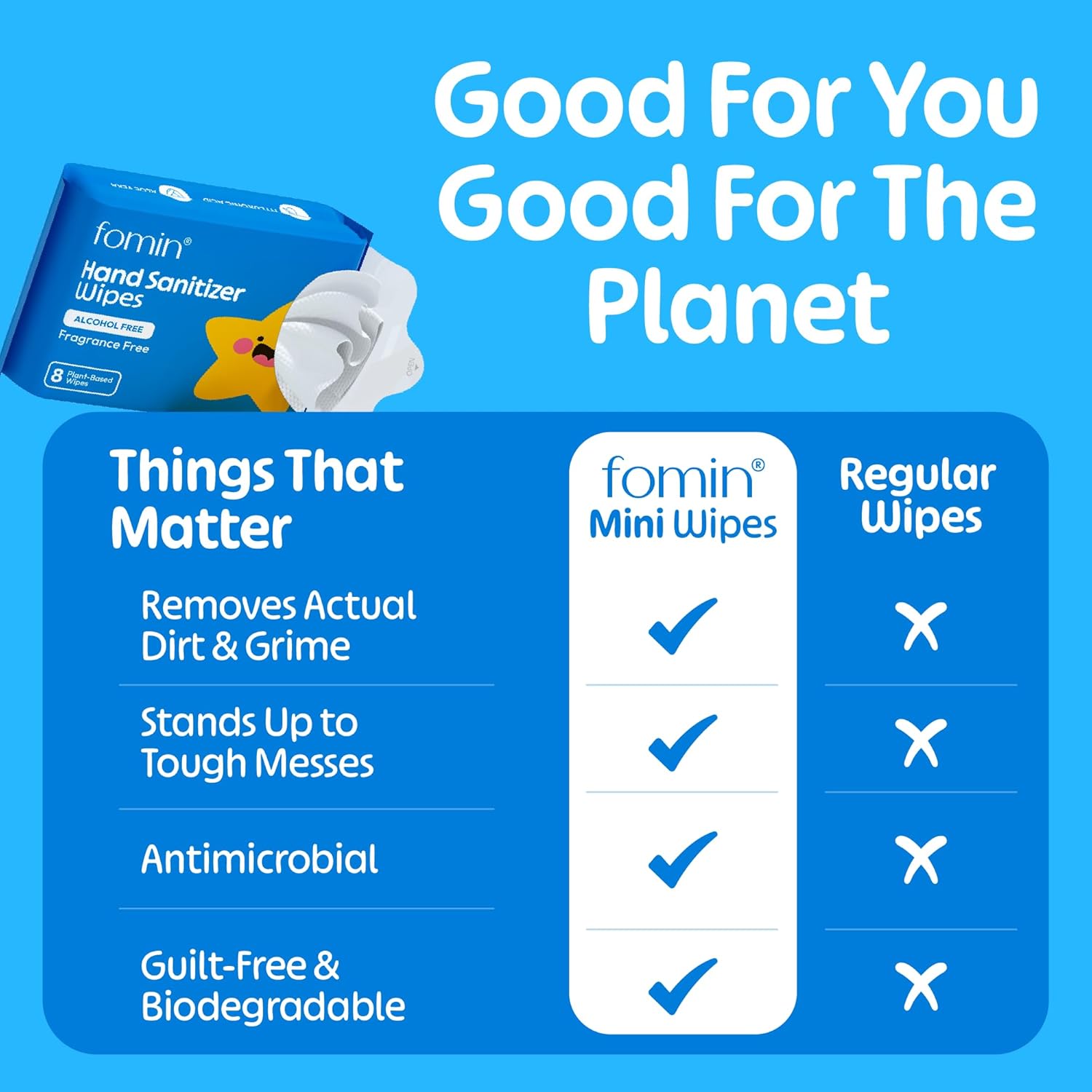 - Travel-Friendly, pH-Balanced Formula: Fomin Hand Sanitizing Wipes are gentle and soothing for delicate skin. With a pH-balanced formula, these mini wipes are ideal for daily use by adults alike, providing a safe and refreshing clean without causing dryness or irritation.