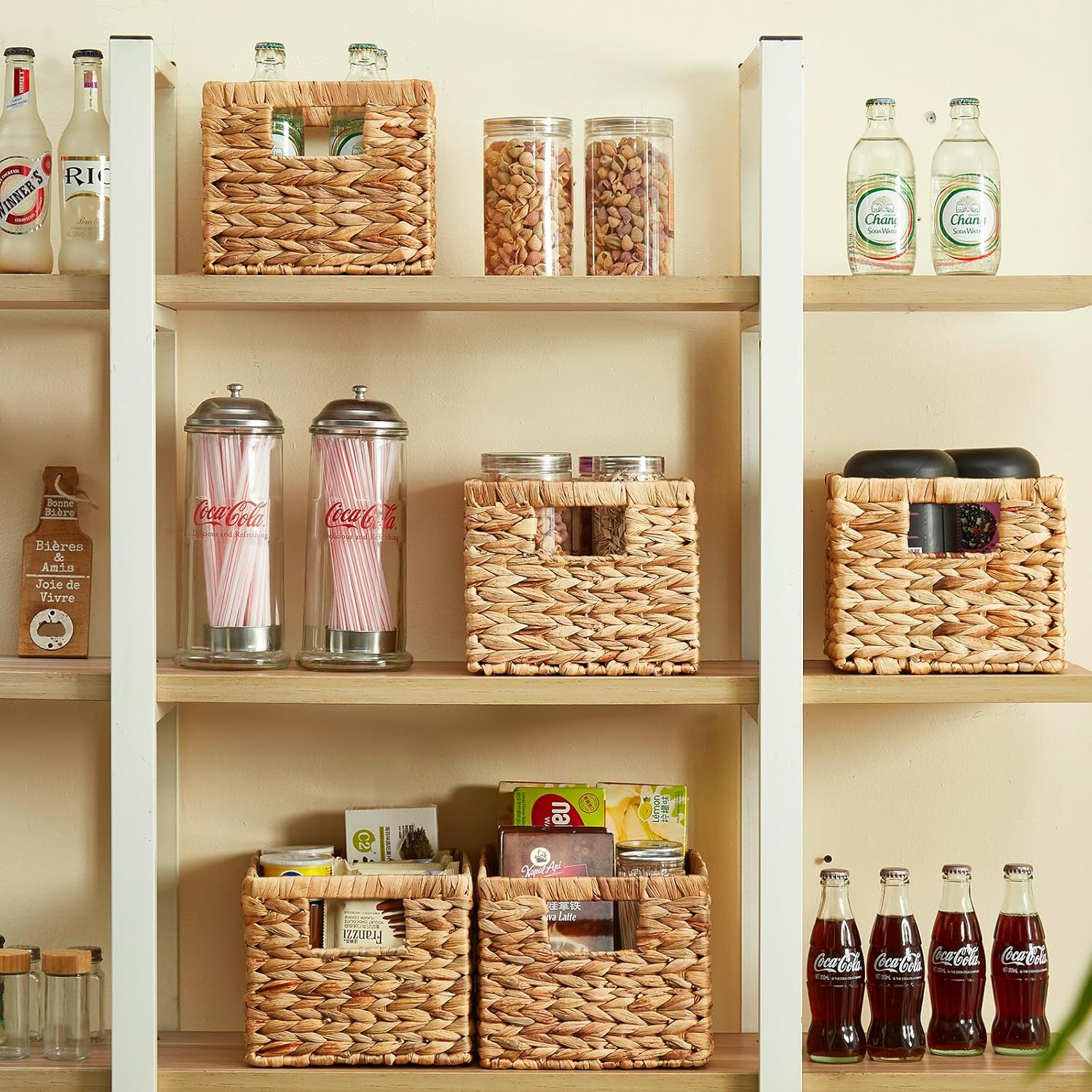- Unique Hand-woven Basket: The wicker storage basket is handmade with 100% natural materials so each closet organizer may have slight differences in color, size, and shape. New small baskets will come with a slight scent of water hyacinths, gradually disappearing over time.