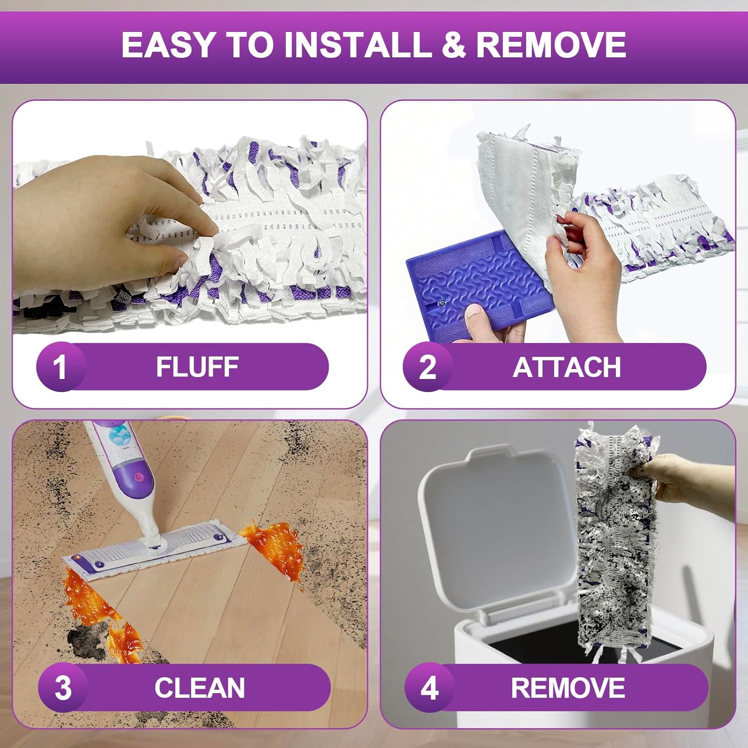 - 【 Easy to use 】 This disposable mop pad refills that is compatible with Swiffer power mops is not fluffy enough due to transportation compression. It only needs to be rubbed a few times by hand to restore the fluffiness. It is very easy to install and can be discarded directly after use, without worrying about future plot issues. It is very convenient.