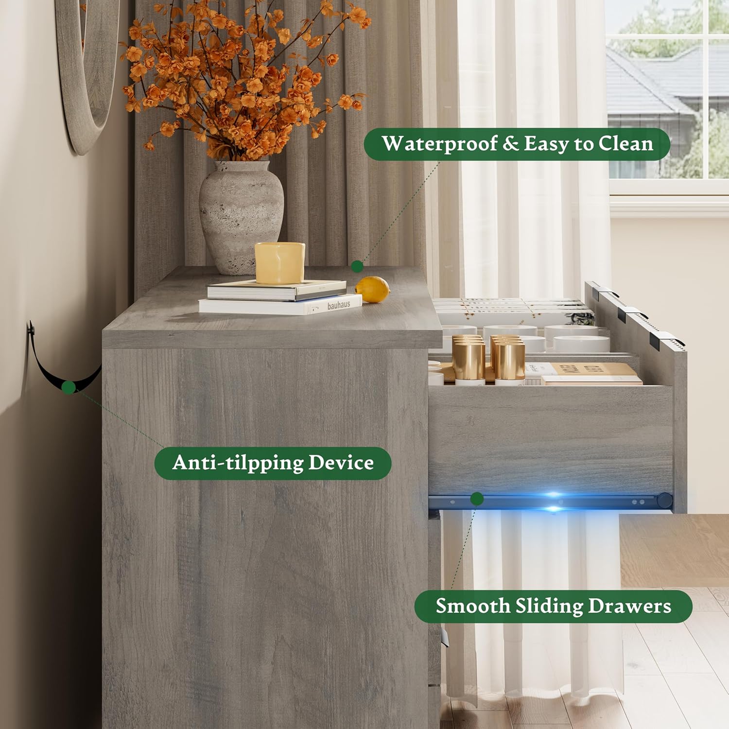 - 【Versatile Wood Dresser】Except for being a wooden dresser in your bedroom or as a console table in your living room, this storage cabinet also can be used as a nightstand or side table. This long dresser could easily fit in various spaces such as the living room, bedroom, hallway, entryway and closet. Its multifunctional design can be perfectly integrated into any room in your house