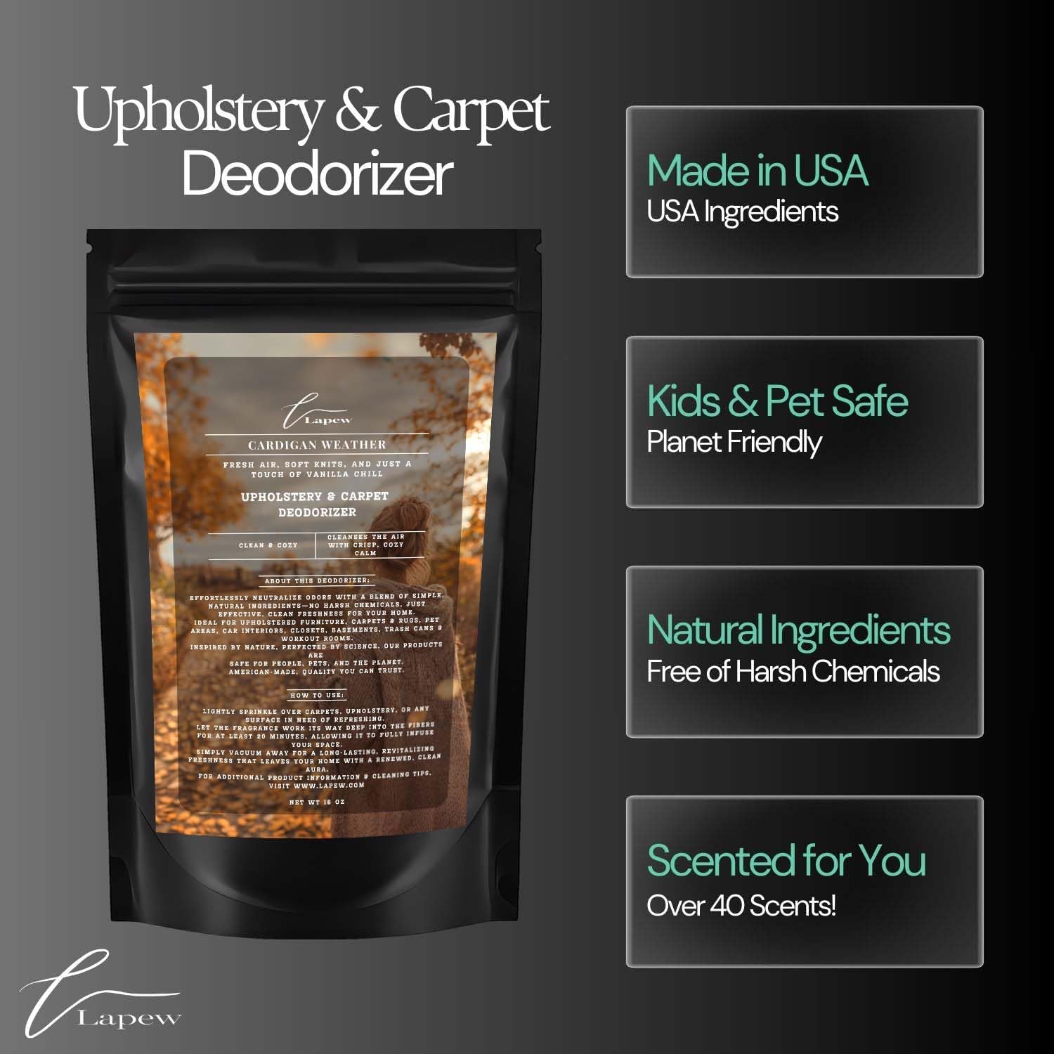 - Powerful Odor Eliminator for Strong Odors: Say goodbye to stubborn smells with the Lapew Cardigan Weather Carpet Freshener Powder, specially formulated to tackle everyday room odors.