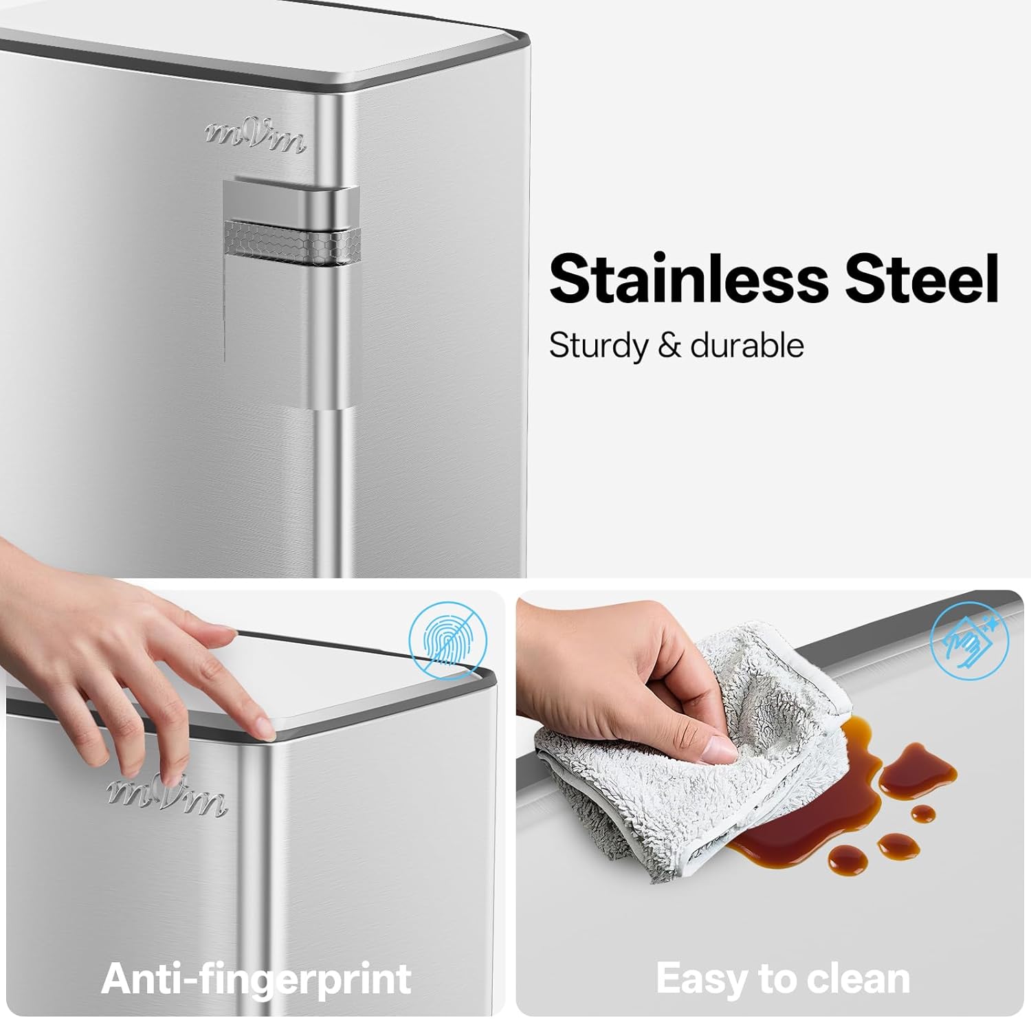 - Stainless steel: mVm trash can has a stainless steel surface, anti-fingerprint exterior and PP plastic inner bucket for reliable strength.
