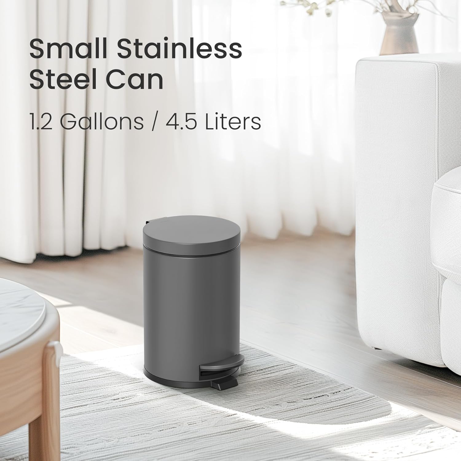 - Convenient Size: This 4.5 liters / 1.2 gallons small black trash can with lid is practical for bathrooms or other small spaces