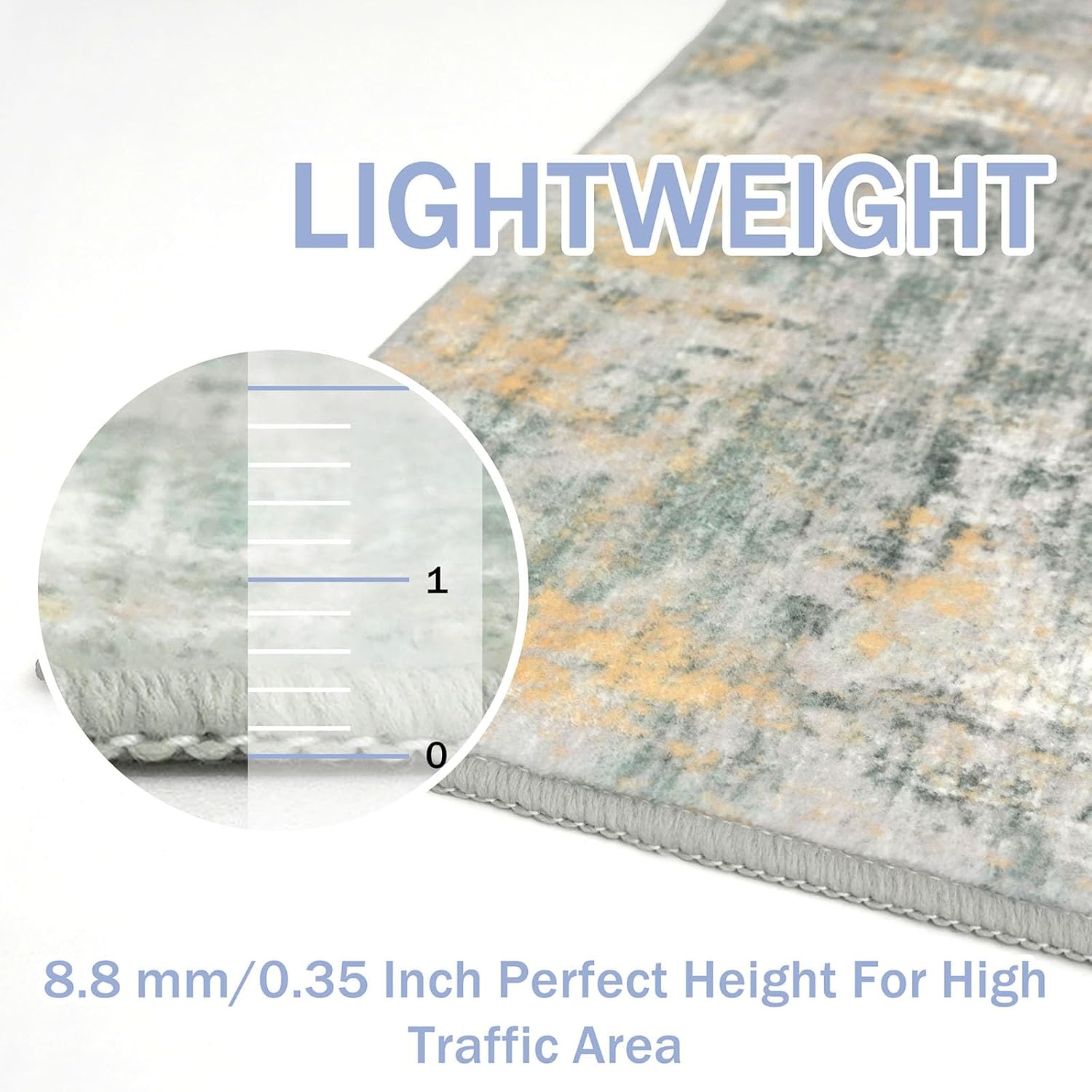 IOHOUZE Abstract Area Rug 3x5 Ft Washable Rugs for Entryway Indoor, Non Slip Kitchen Rug Printed Faux Wool Throw Rugs, Indoor Door Mat for Door Entrance Foyer Living Room, Light Green/Gray/Orange