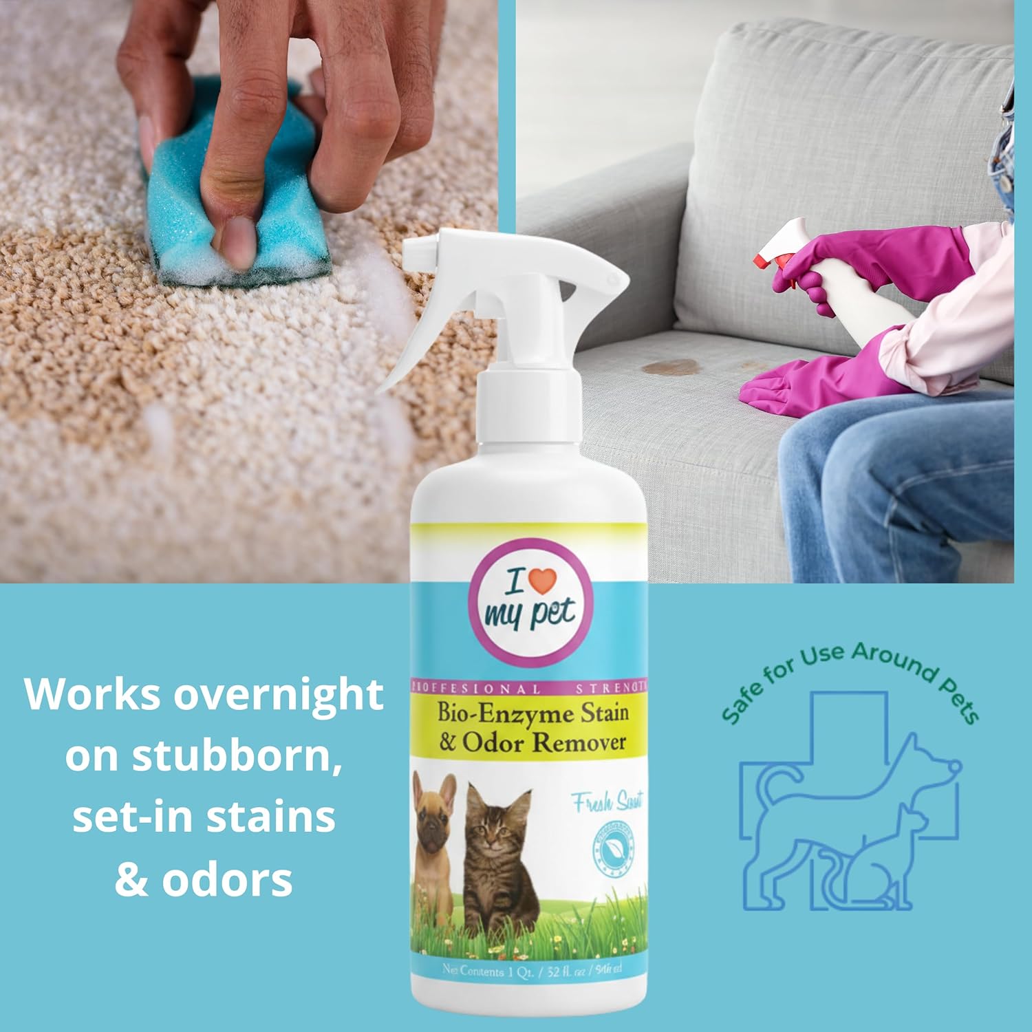 I Love My Pet Bio-Enzyme Stain and Odor Eliminator for Home, Enzyme Cleaner, Pet Carpet Cleaner Spray, Pee, Carpet Stain Remover Spray, 32 oz Fresh Scent