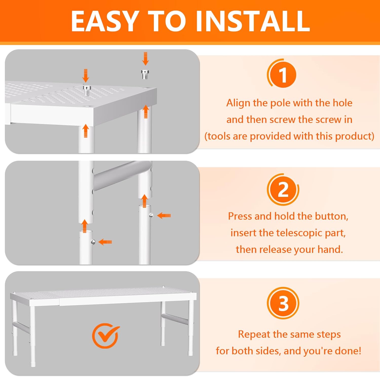 - Easy Installation:Comes with all needed accessories and step-by-step instruction. You only need to screw in a few nuts to assemble the countertop organizer.Its adjustable design ensures it is easy to use and fits perfectly in your kitchen space