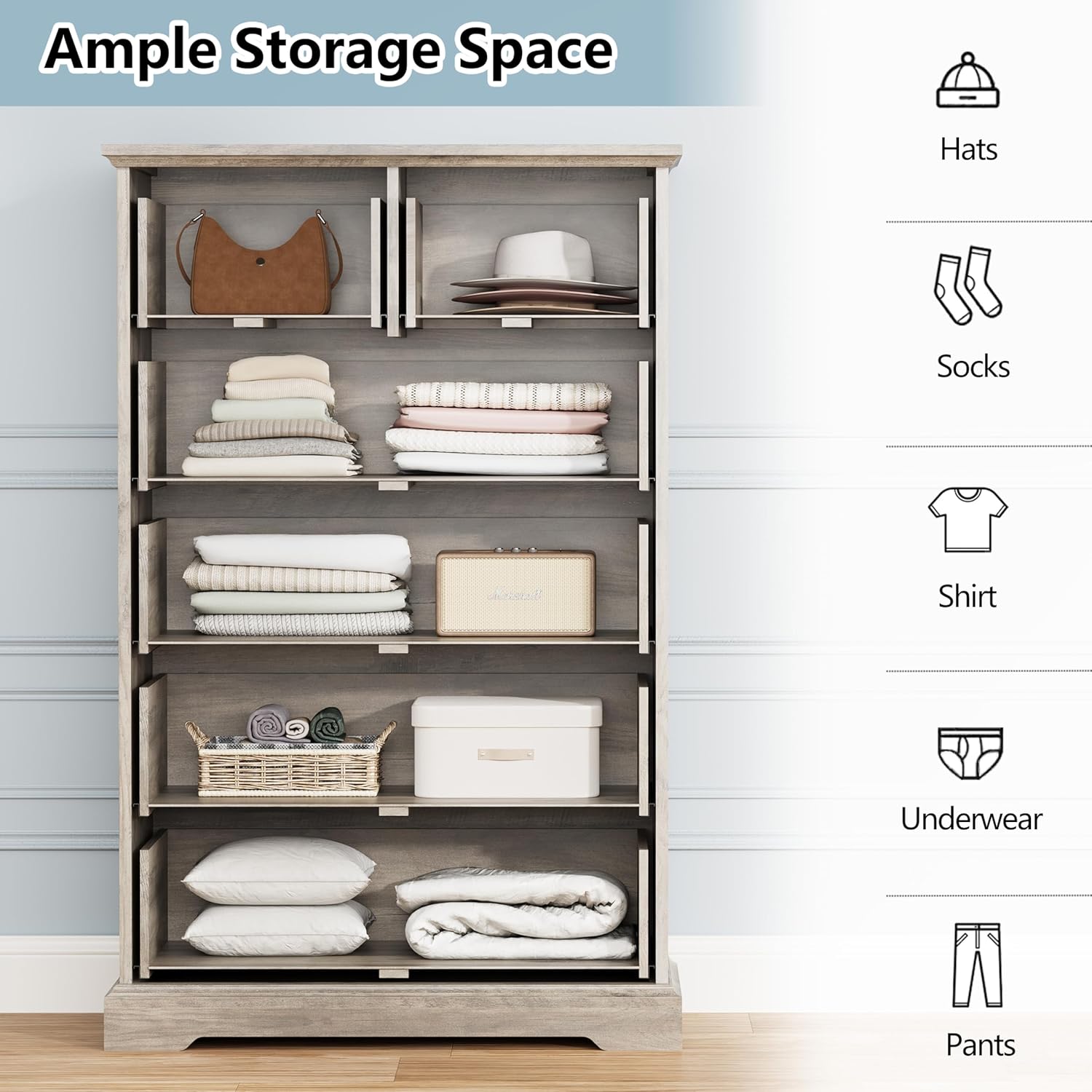 - Timeless, Refined Design: This farmhouse tall dresser combines sleek, contemporary lines with a natural wood grain finish, adding warmth and character to any bedroom or living space. The antique bronze metal handles bring a touch of vintage charm, perfectly balancing traditional style with modern design. Whether used as a bedroom dresser, a tall dresser for closet, or a modern wooden chest of drawers, this piece serves as both a functional storage solution and a stylish focal point in your home.