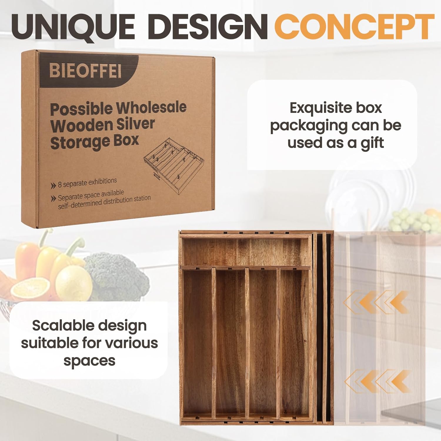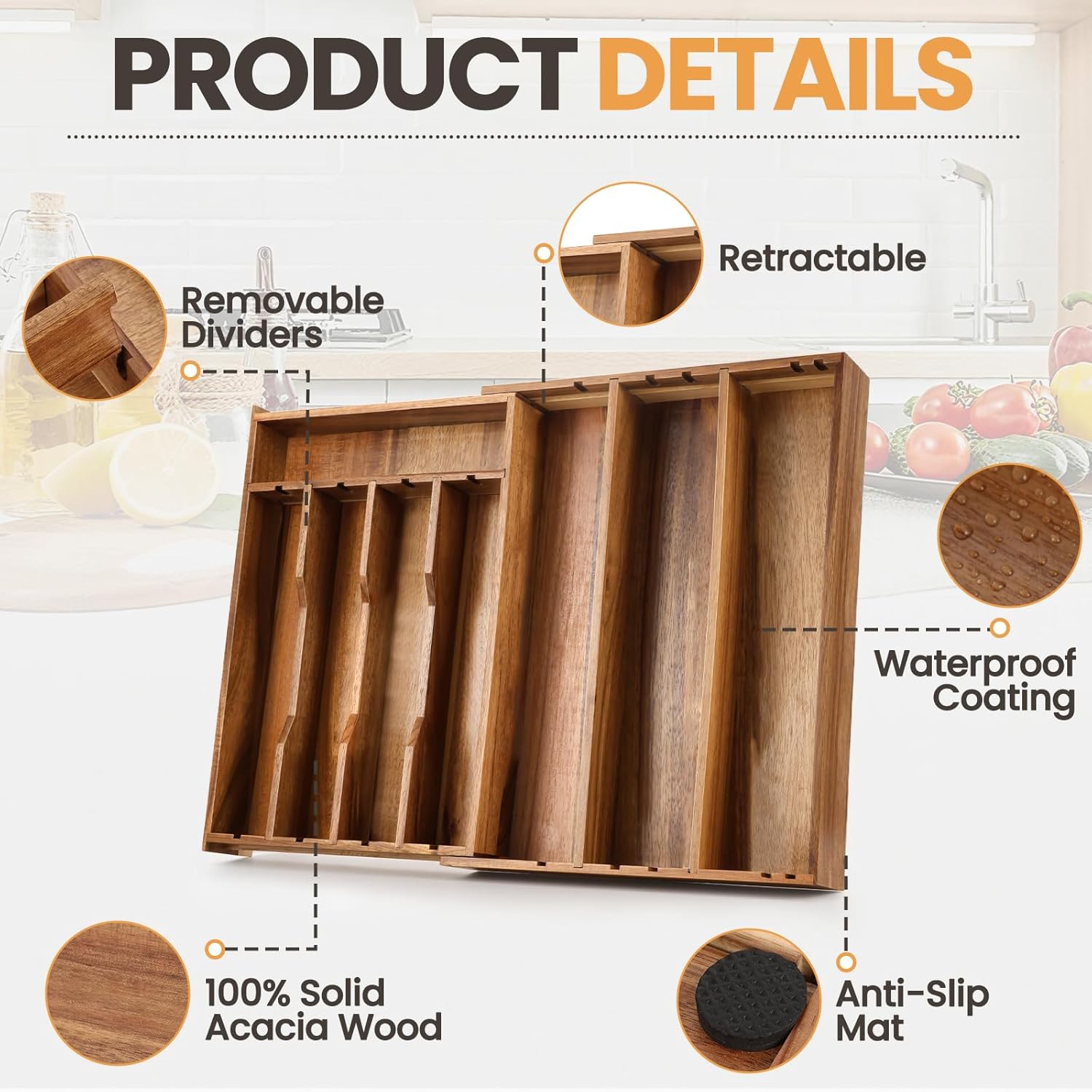 - Stylish and Functional: Enhance your kitchen decor with the exquisite appearance of natural acacia wood, seamlessly integrating functionality and elegance to meet your kitchen drawer sorting and storage needs