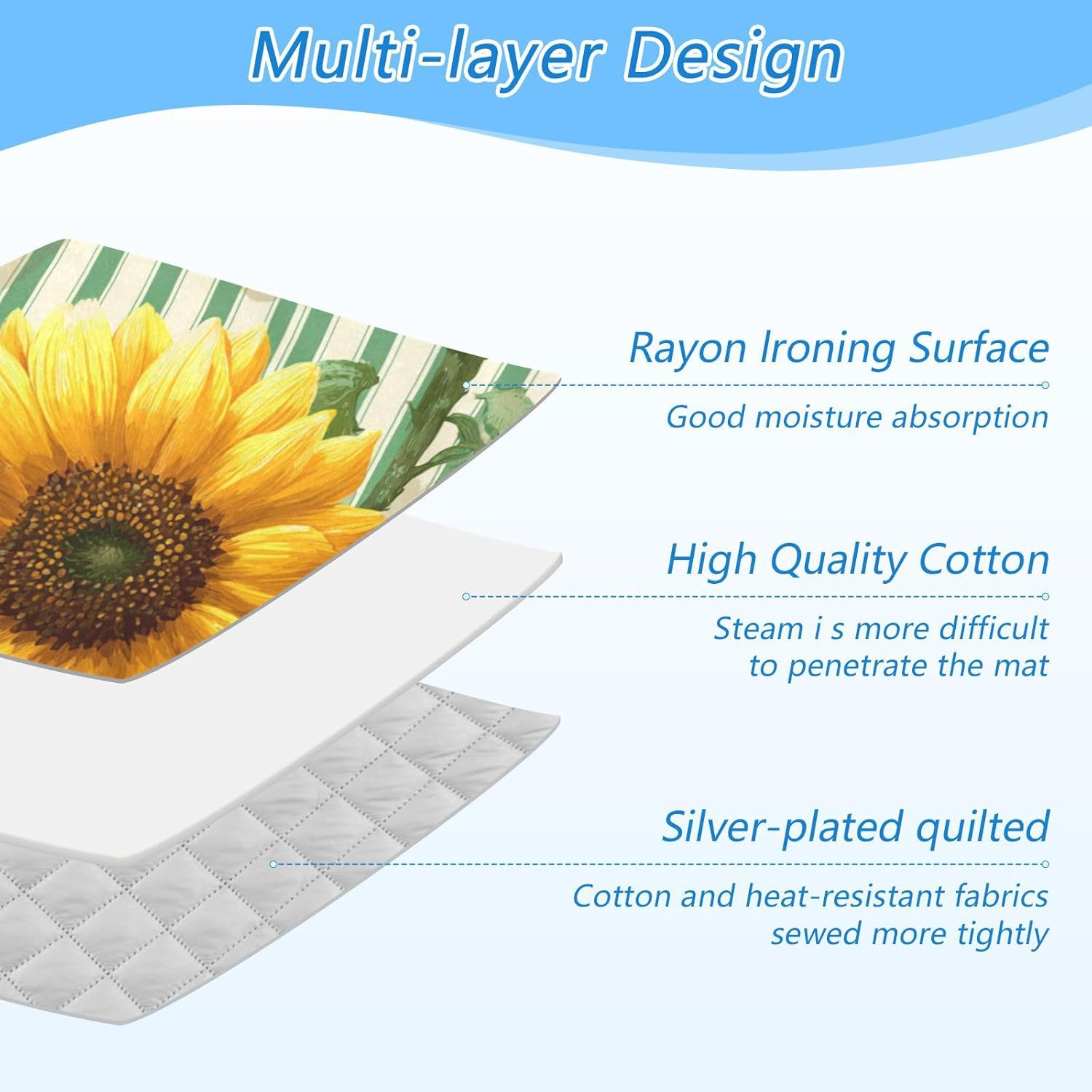 Green Striped Sunflowers and Bees Ironing Mat for Table top Portable Ironing Pad Blanket for Washer Dryer Countertop Travel