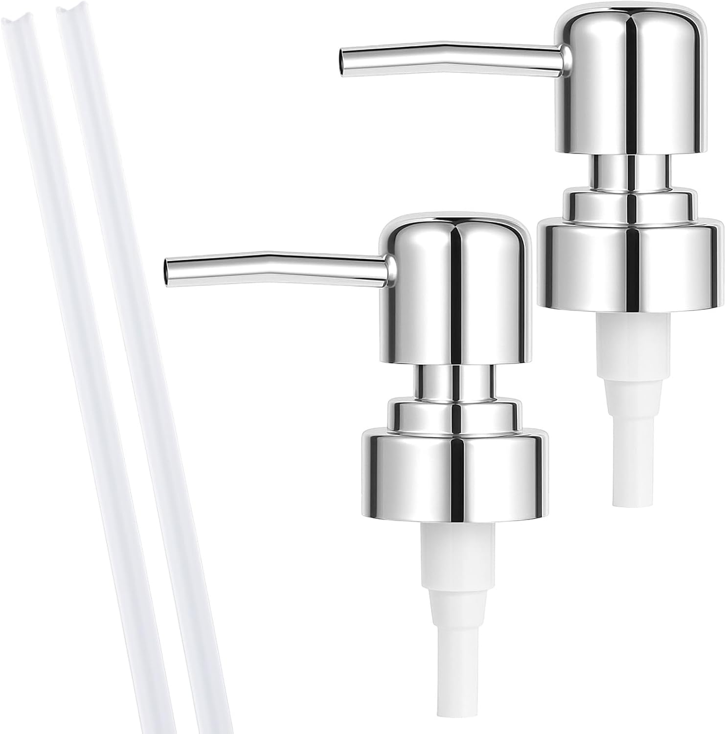 2 Pack Soap Dispenser Pump Replacement Top Dispenser Pumps Refill Dispensers Liquid Hand Soap Dispensers Soaps Pumps Replacement for Lotion Regular Glass Mouth Bottles, Silver