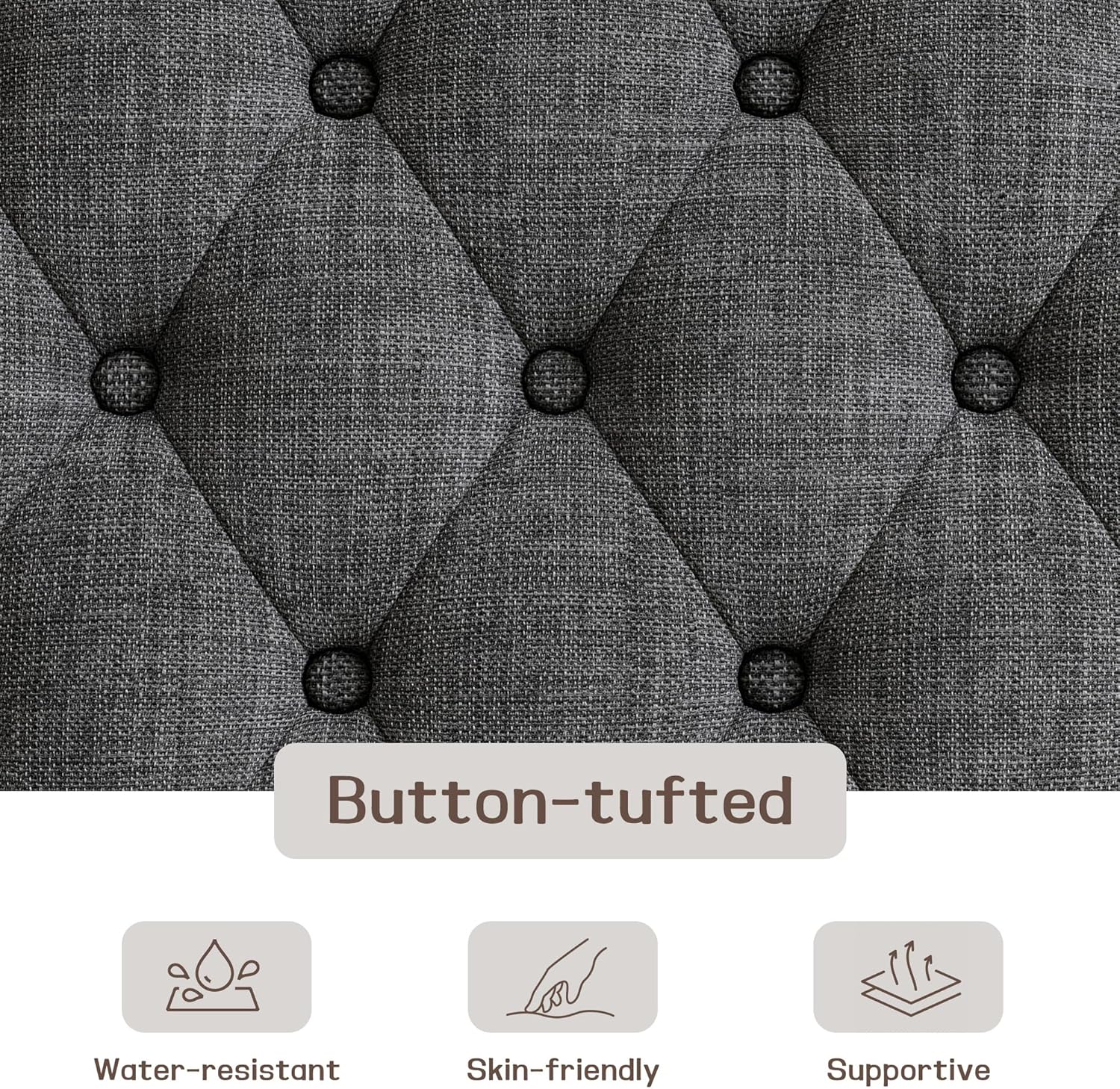 48" Large Ottoman with Storage Coffee Table, Upholstered Tufted Linen Ottoman Bench with Solid Wood Shelf for Living Room, Bedroom, Holds 250lbs (Dark Gray)