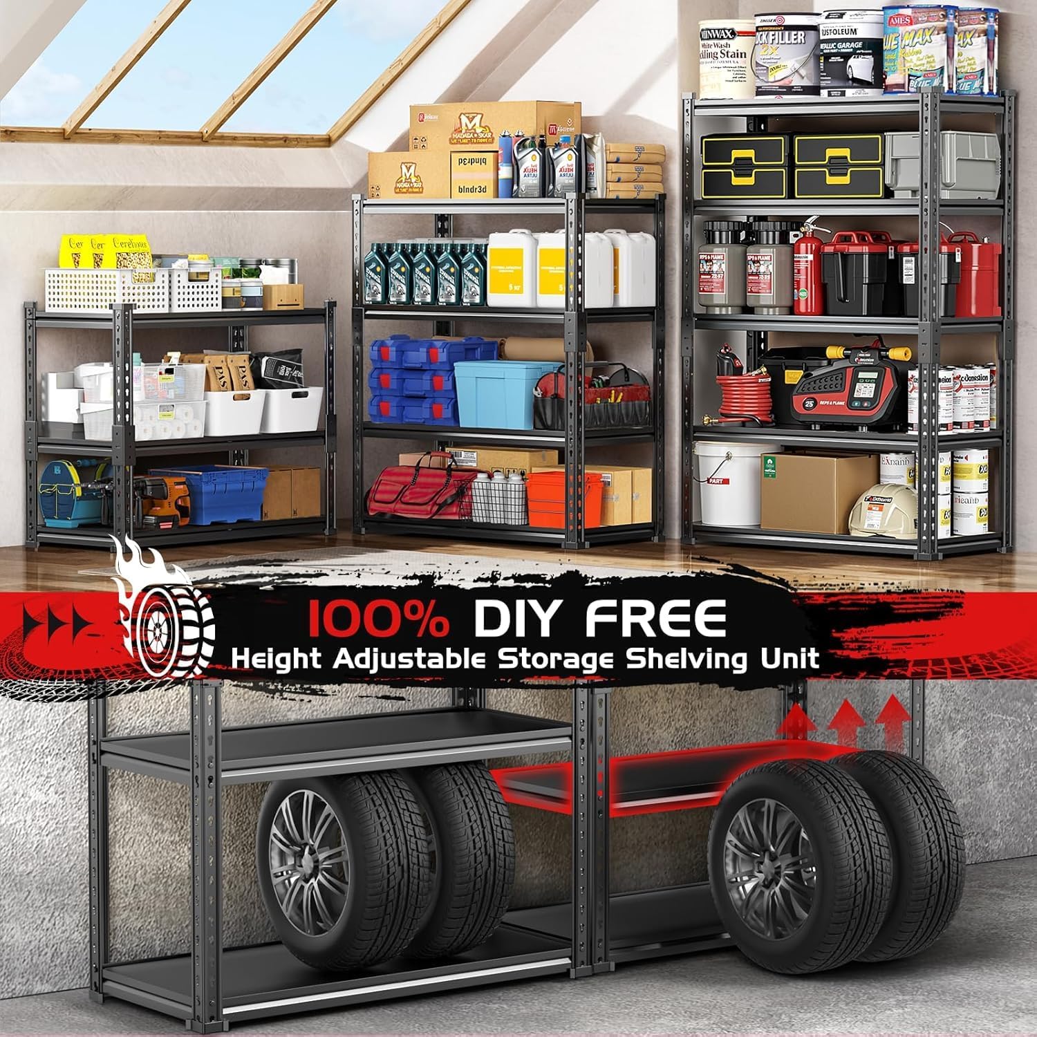 - 【Versatile Storage Shelves for Any Space】The perfect size for endless uses! These metal shelving units are ideal for your garage, pantry, closet, kitchen, basement, office, warehouse, or even retail. This 5-tier storage rack expands your space significantly, keeping your home or business clean and organized – the ultimate shelves organizer solution.