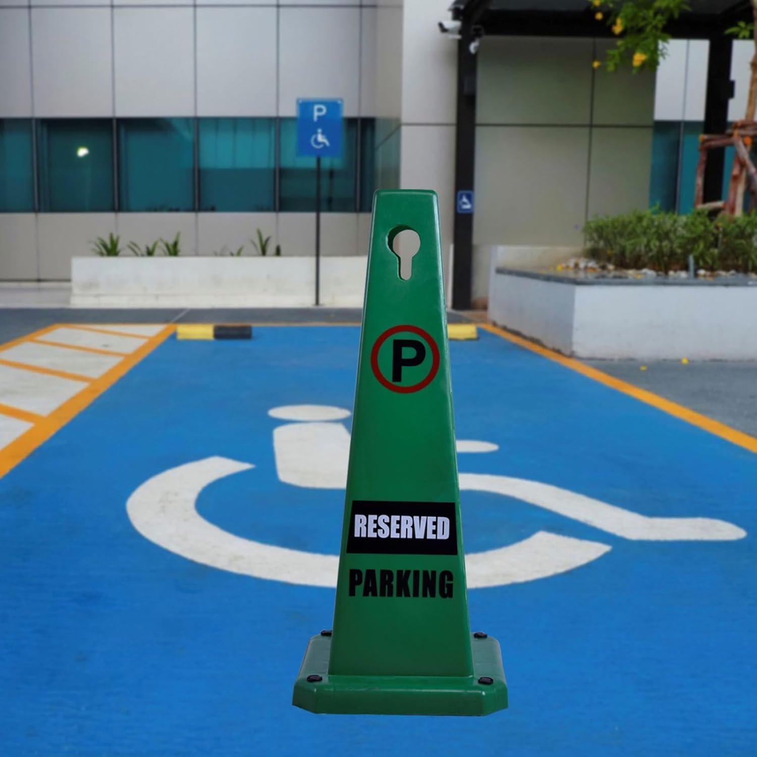 4-Pack 26.5" Caution Cones, 4-Sided Visible Safety Signs with Heavy Rubber Base, Warning for Slip & Fall Prevention, Indoor/Outdoor Use (Green, 4Pcs-Reserved Parking)