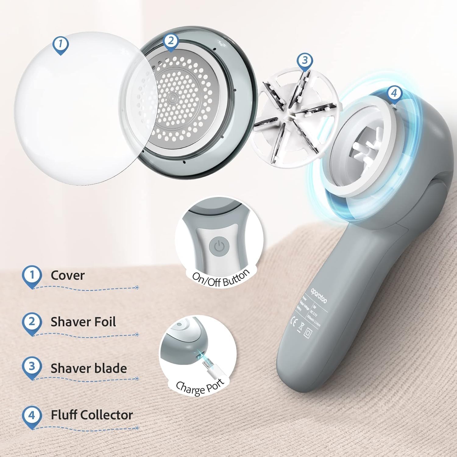 - Powerful Fabric Shaver for Clothing : Our electric fabric shaver comes with 2 speed settings, up to 9000RPM. Firstly, the mesh cover of this fabric shaver for furniture has 3 sizes of holes, which can quickly clean up different sizes lint, pilling, fuzz, pill . Secondly, compared to the traditional 3-leaf blades, we equip with 3pcs rust-proof 6-leaf blades, which can greatly improve the working efficiency of the rechargeable fabric shaver and meet the needs of all fabric surfaces.