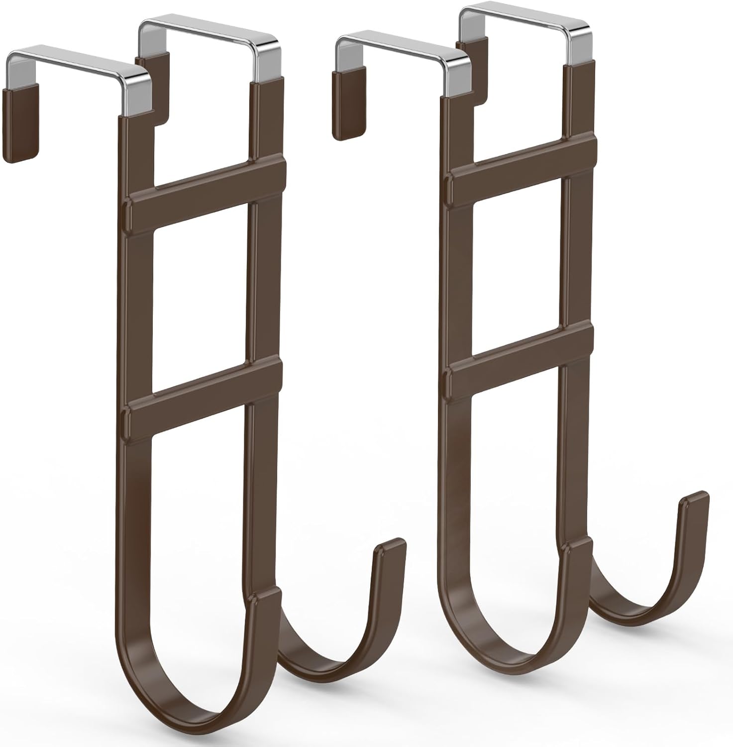 FYY Over The Door Hooks - 2 Pack Heavy Duty Dual-Hook Organizer Hanger with Non-Slip Rubber for Towels, Clothes, Hats & Bags Use in Bathroom, Bedroom, Kitchen - Fits Interior Doors Up to 1.6" Brown