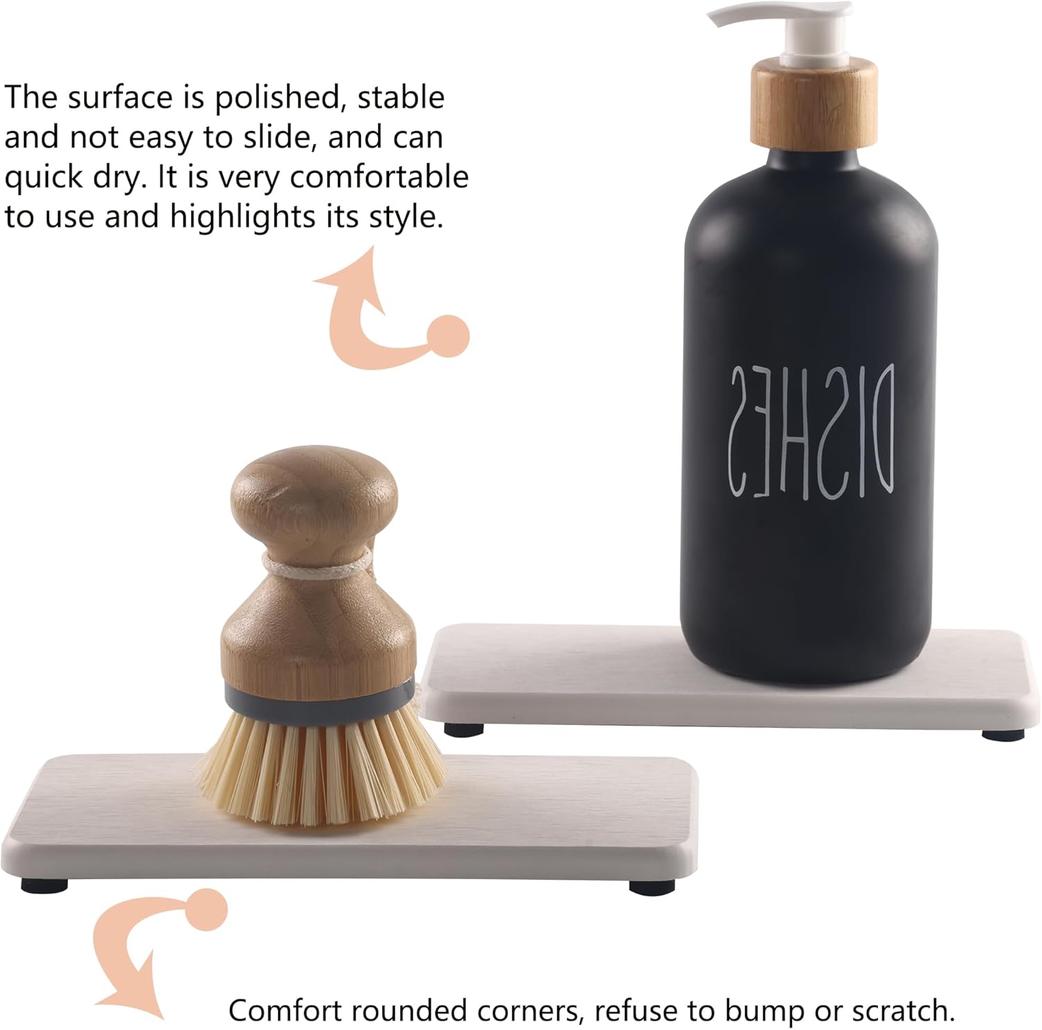 - Made from natural Diatom mud and plant fiber, small holes within diatomite enable it have amazing water absorption. They could absorb water and gets dry in a few minutes. It makes the Bathroom Counter top more dry and tidy.