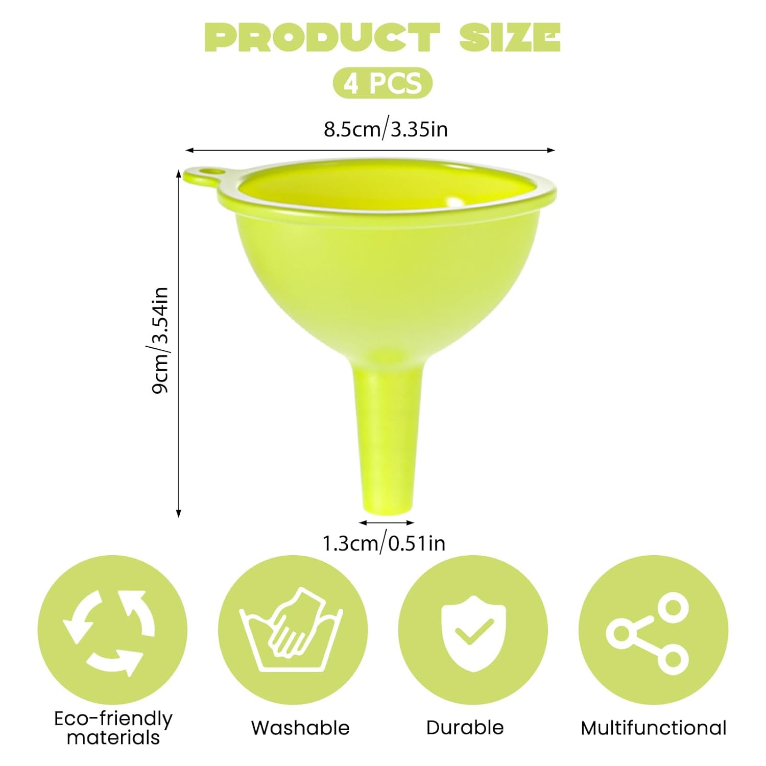 - 【Complete Funnel Set】This 4-piece silicone kitchen funnel set provides versatile solutions for all your transferring needs. The set includes two different sizes specifically designed for wide mouth jars and narrow neck bottles, allowing you to handle various containers from spice jars to large canning jars. Made from flexible food-grade silicone, these funnels won't crack or break like plastic alternatives and maintain their shape during use, making them perfect for both liquid and dry ingredients transfer.