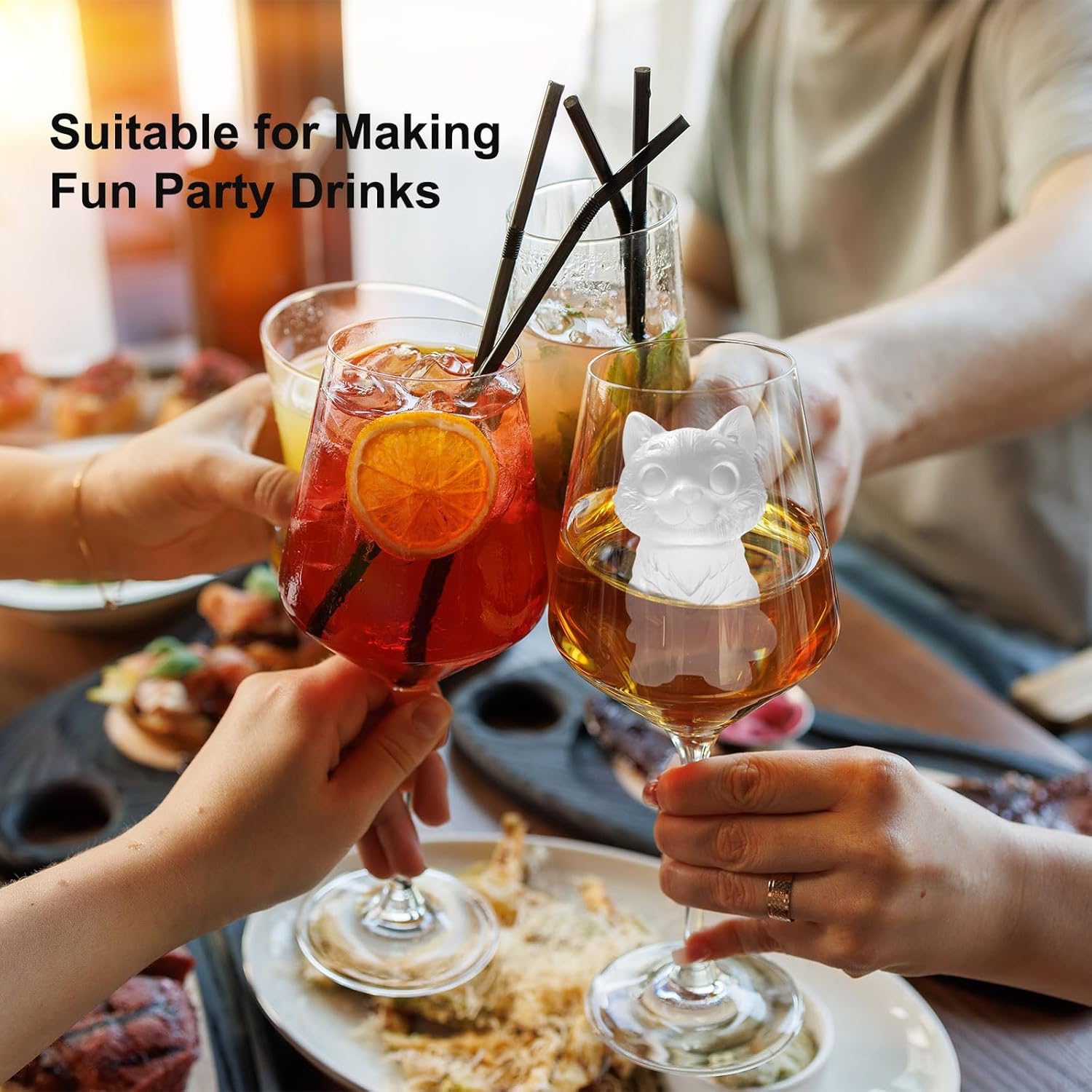 - 🧊Fun Cat Shaped Ice Cube Mold -- Our Ice Cube Mold can make cute Cat shaped ice cubes; it has a large size and is designed for whiskey glasses, which is very suitable for drinks that need to melt slowly, such as whiskey, cocktails, bourbon, rum, tequila, gin, etc.