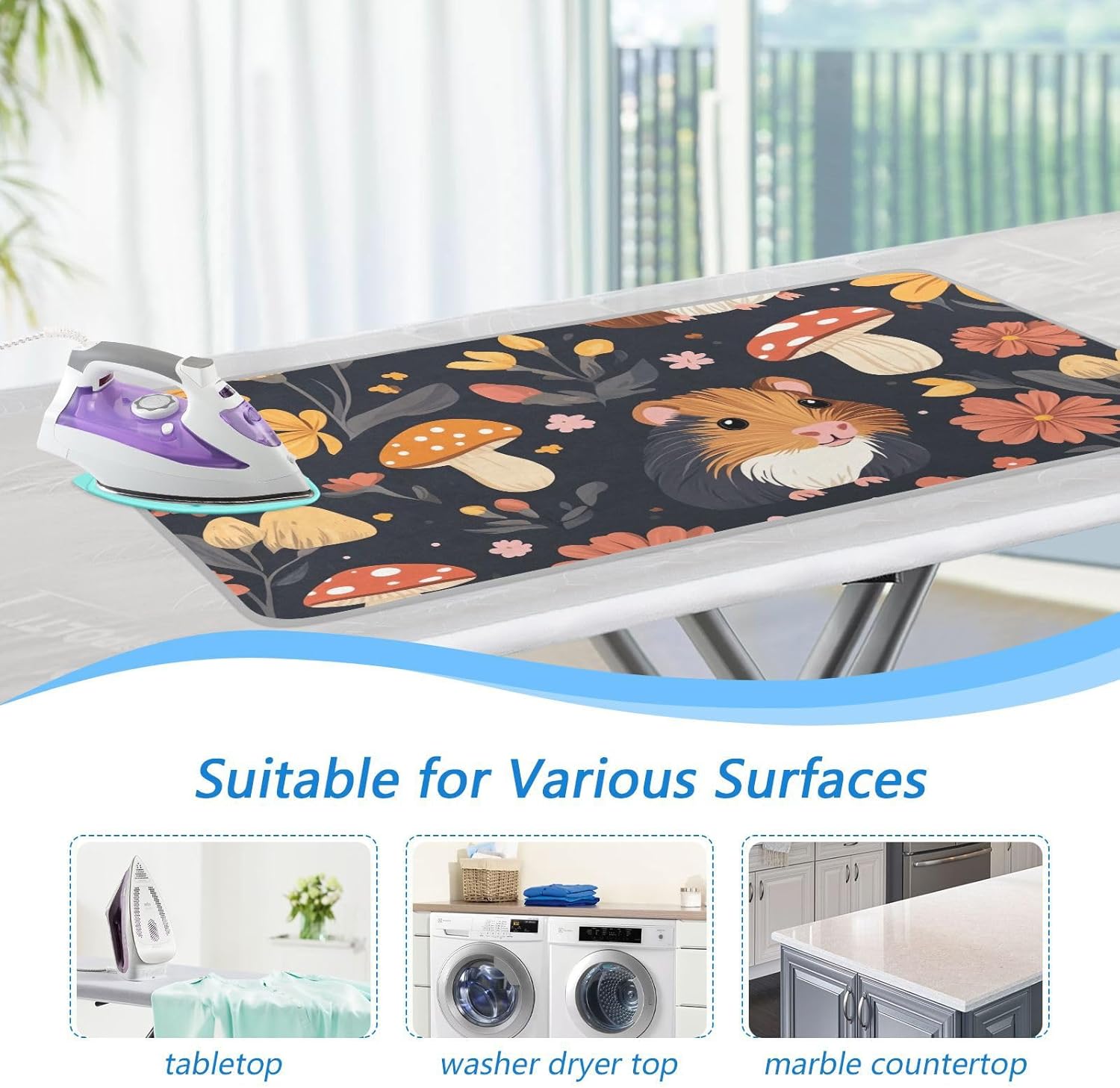 Ironing Mat Portable Ironing Pad Ironing Blanket for Table Top Heat Resistance Double-Side Using Travel Large 47.2 x 27.6 Inch Foldable Lightweight Guinea Pig Mushroom Floral Black