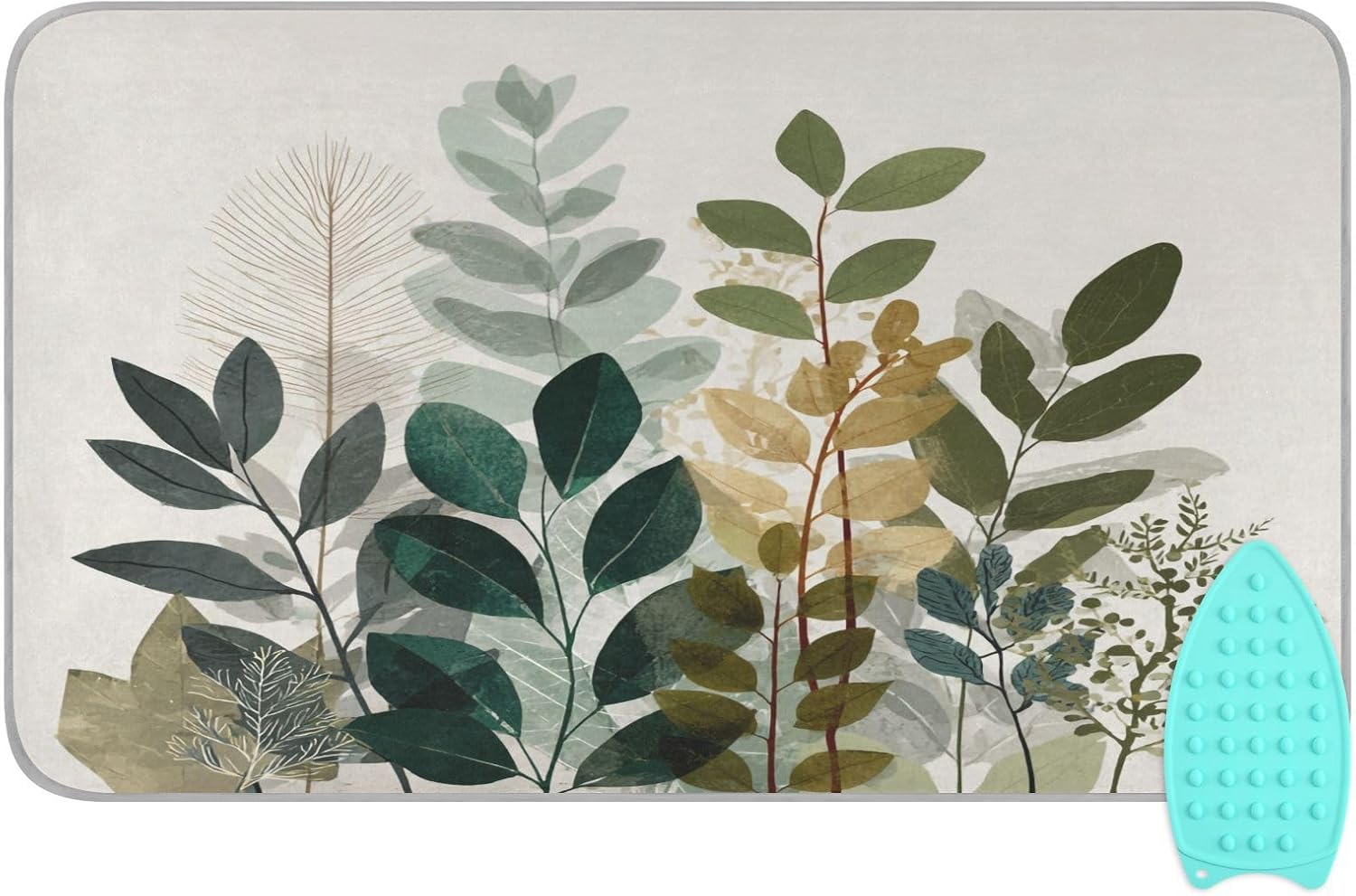 Ironing Mat Portable Ironing Pad Ironing Blanket for Table Top Heat Resistance Double-Side Using Travel Large 47.2 x 27.6 Inch Foldable Lightweight Beige Boho Style Leaves