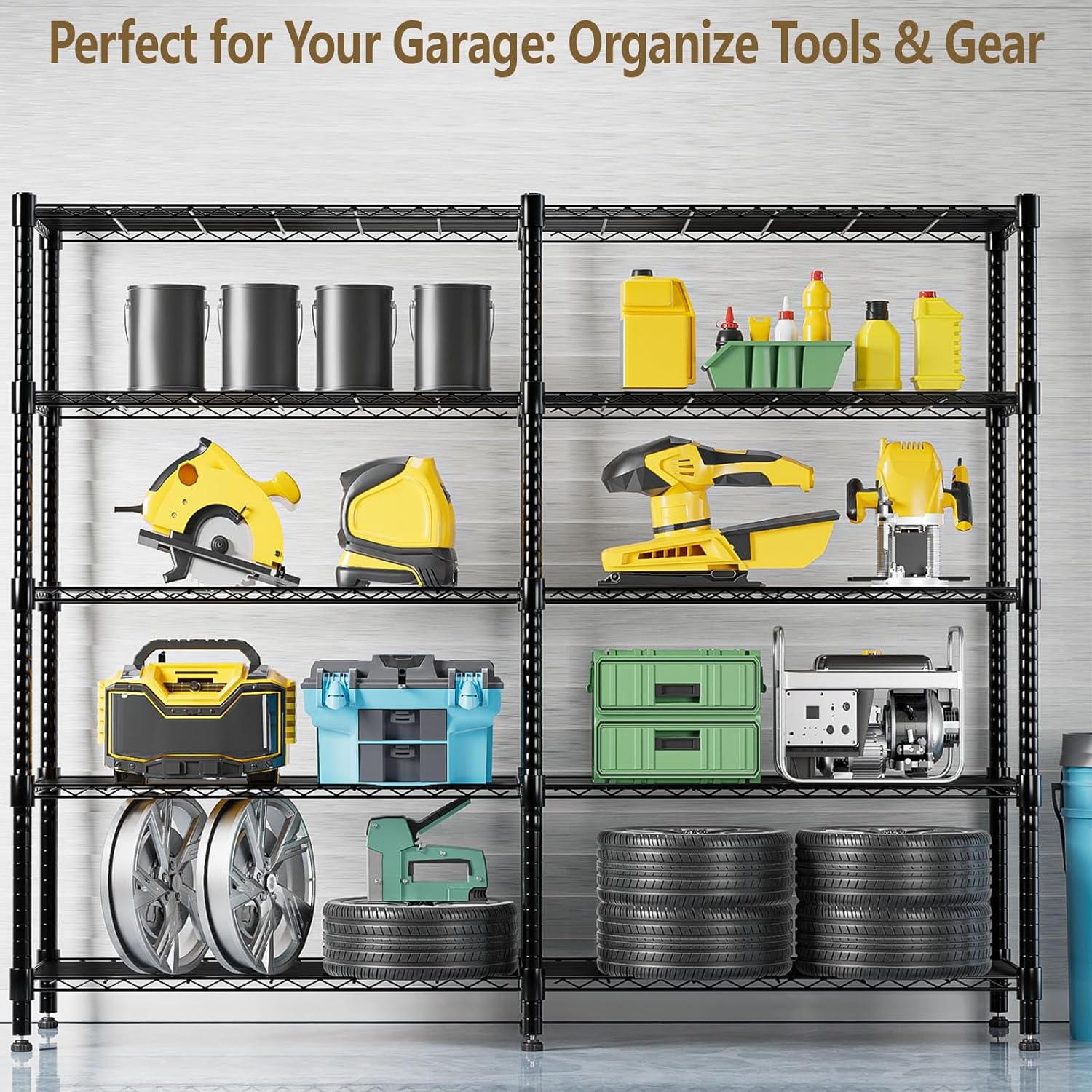 Himimi 72" W Wire Rack Shelving-2000LBS Capacity, Adjustable Storage Shelves Metal Shelves for Storage, 5-Tier Heavy Duty Wire Organizer for Kitchen, Garage, Pantry, 72" W x 18" D x 72" H, Black