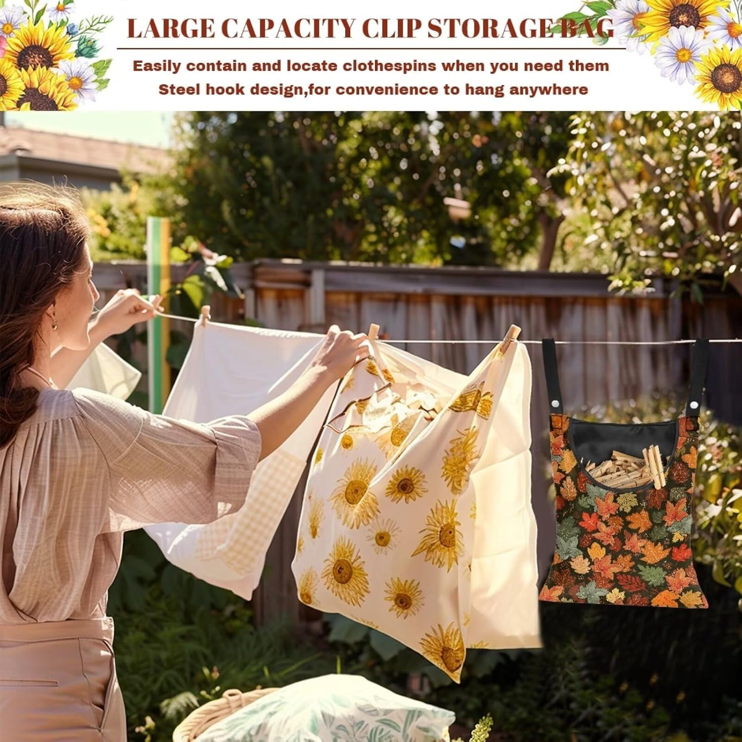Fashion Maple Leaf Laundry Clothespin Holder Bag - 12x14.5 Inch Waterproof Hanging Organizer with Large Opening for Patio & Home