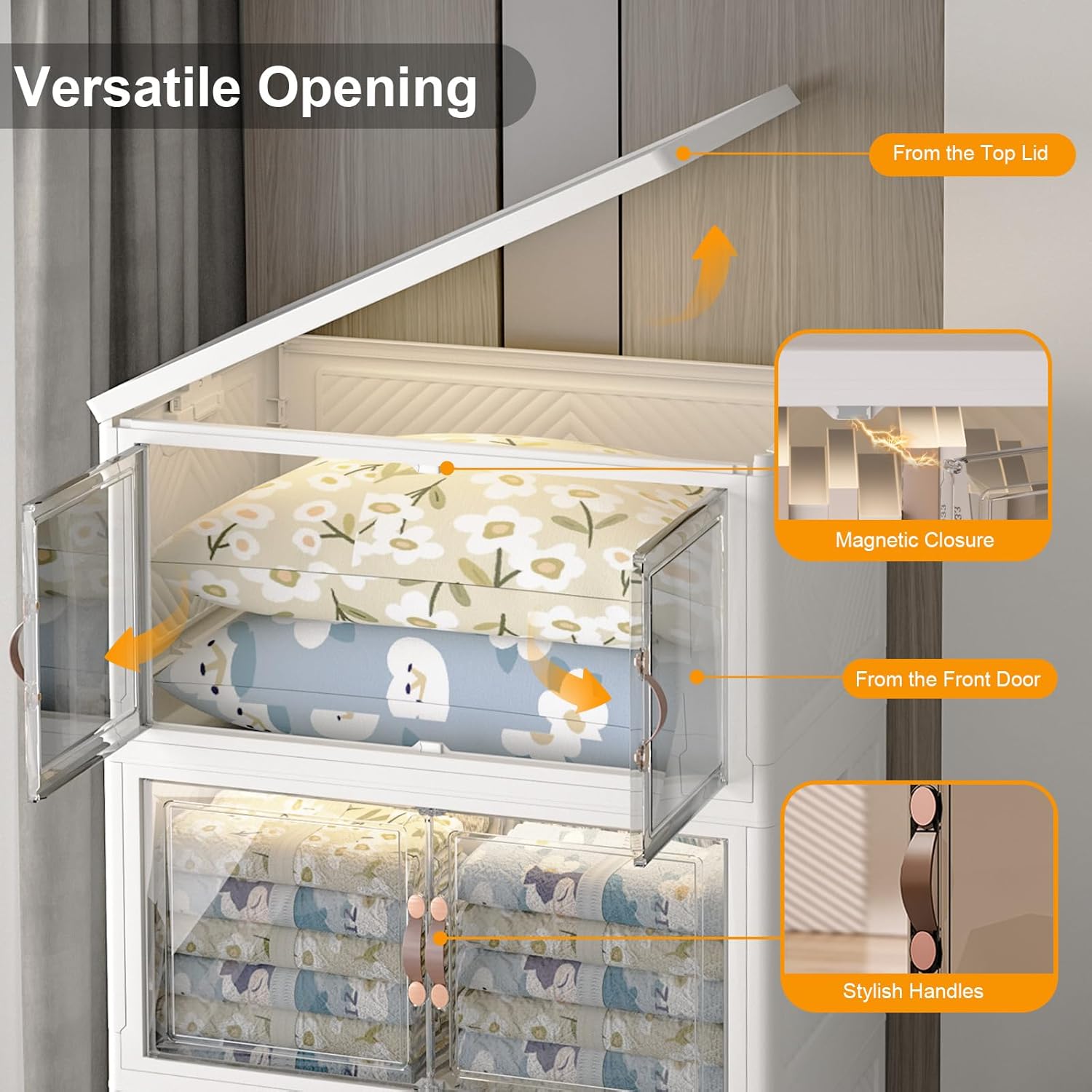 Extra Large Stackable Storage Bins with Lids & Wheels & Door, 960QT-160QT/40GAL*6Pack Foldable Collapsible Closet Organizers, Plastic containers drawers for bedroom Dorm