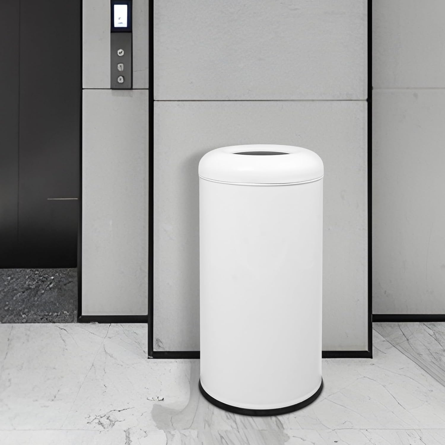 58.6 Liter / 15.48 Gallon Commercial Open Top Trash Can White Stainless Steel Trash Can Outdoor Indoor Garbage Enclosure with Lid Inside Barrel (White)