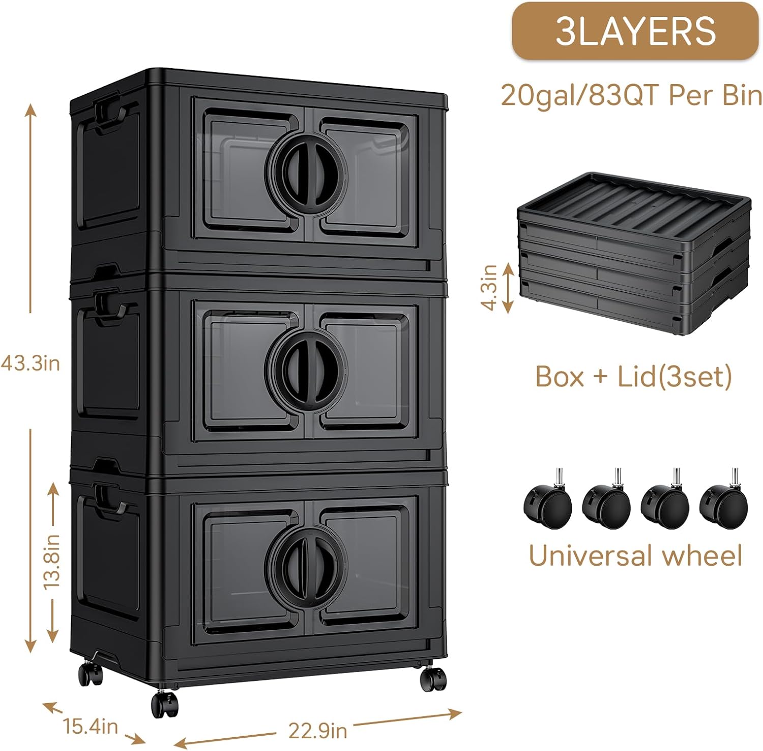 - Large Capacity & Durable Construction: Each layer measures 22.9in L x 15.4in W x 13.8in H and holds 83 Qt; this foldable storage bin is made from thickened PP material, sturdy, impact-resistant, and ideal for everyday home organization.
