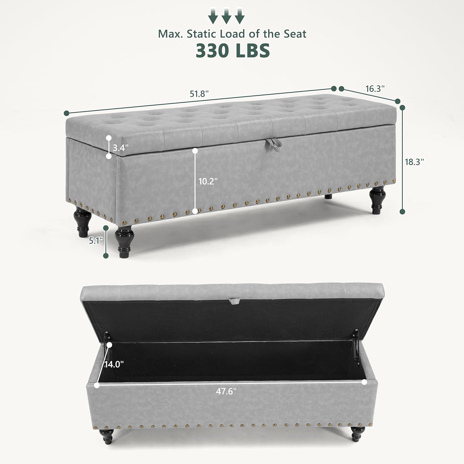 - Large Hidden Storage: Keep your space tidy with easy and quick access to stored items. The spacious interior of the large storage ottoman bench for bedroom provides ample room to organize blankets, clothes, shoes, helping you eliminate clutter