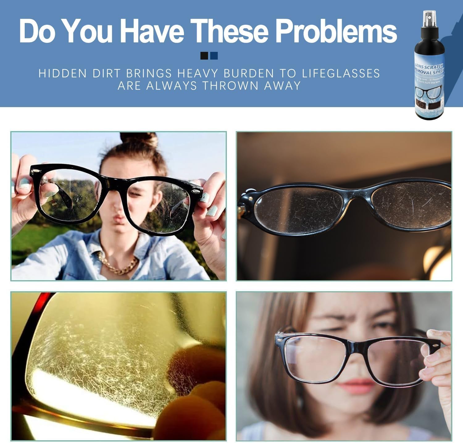 - 【Quick and Efficient]】Lens scratch removal spray can effectively clean surface dirt, giving you a clearer vision. Creates a streak-free surface that enhances your glasses and prevents future stains.