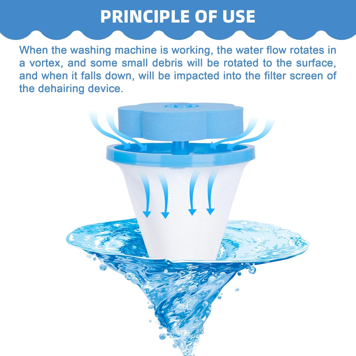 - USE METHOD: Place the Hair Filter inside the washing machine,positioning it on top of your clothes before starting the cycle.Activate the pulsator washing machine to initiate debris and hair collection